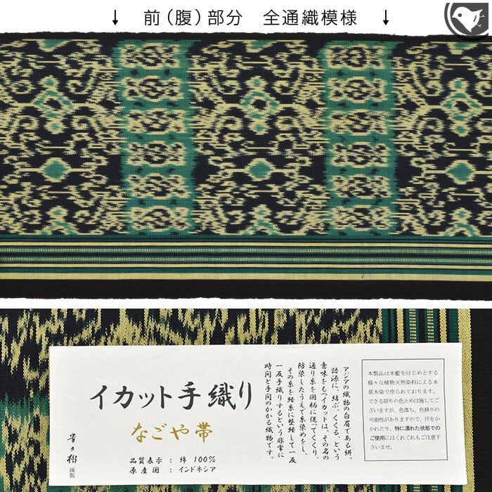 [名古屋帯]貴久樹 謹製 手織り インドネシア イカット 九寸帯 綿紬 日本製(商品番号:21839) お仕立て代込み!送料無料!