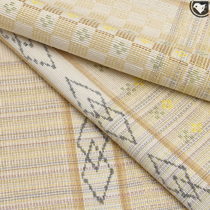 花織の柄には黄色と緑色が施されており