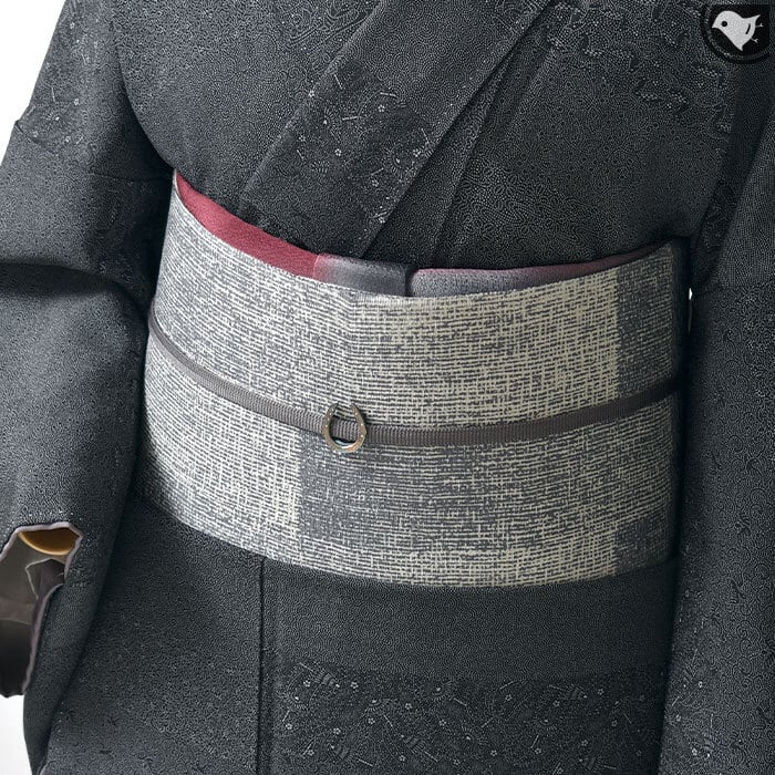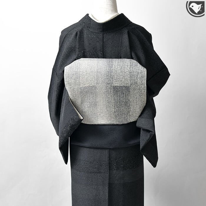 [名古屋帯]京都染め屋 FIVE 謹製 格子木目文様 型染め 九寸帯 正絹 日本製(商品番号:21880) お仕立て代込み!送料無料!