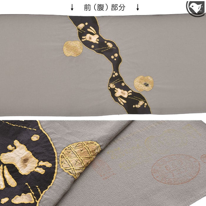 [名古屋帯]新潟県 十日町の老舗 根善 謹製 絞り染め 道長うさぎ文様 九寸帯 正絹 日本製(商品番号:21883) お仕立て代込み!送料無料!