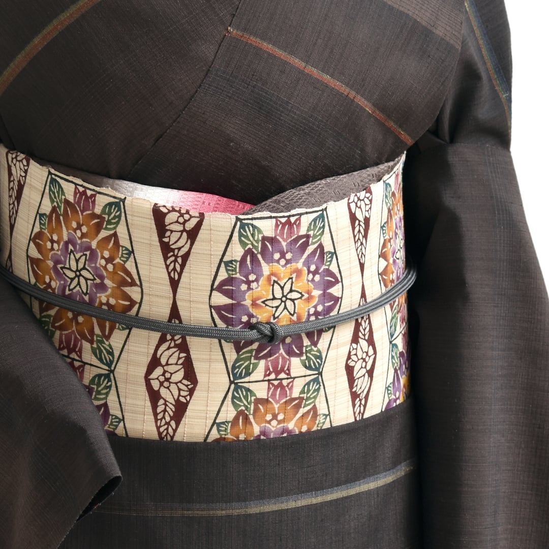 高三織物 九寸帯 正絹 日本製(商品番号:21820)