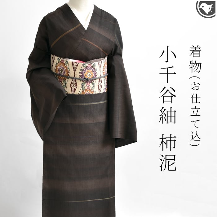 [着物](単衣/袷)小千谷紬 越後おぐに 高三織物 謹製 柿泥/段色 正絹 日本製(商品番号:21818) お仕立て代込み!送料無料!