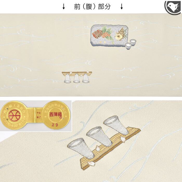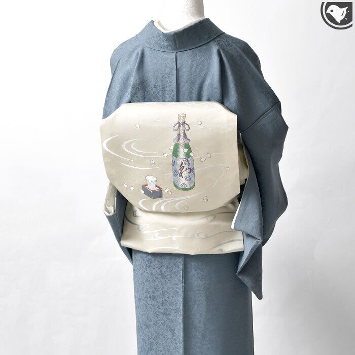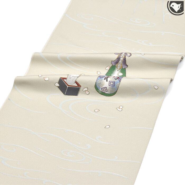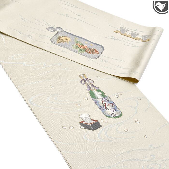[名古屋帯]京の老舗 西陣 まいづる 謹製 春の日本酒 九寸帯 正絹 日本製(商品番号:21894)