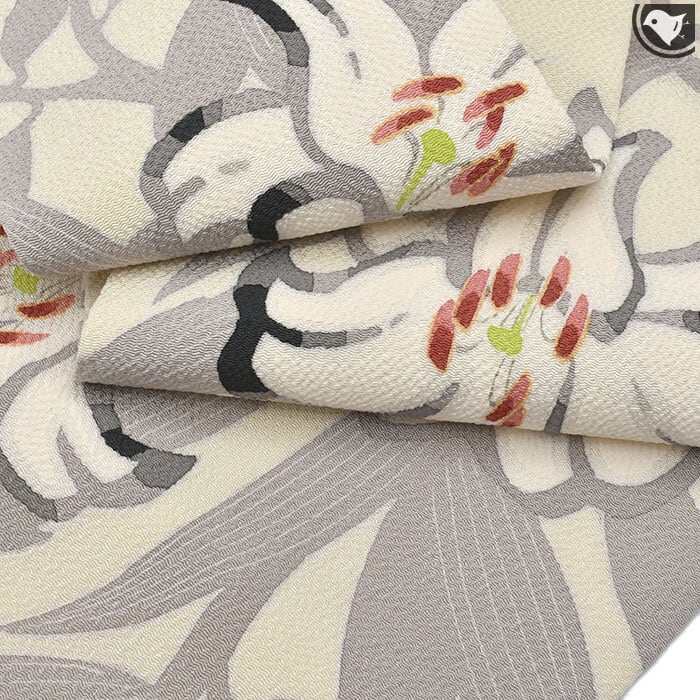 [名古屋帯]【未使用/新古帯】(仕立て上がり) 手描友禅作家 湯本エリ子 作 カサブランカ 丹後縮緬地 九寸帯 正絹 日本製(商品番号:21912)