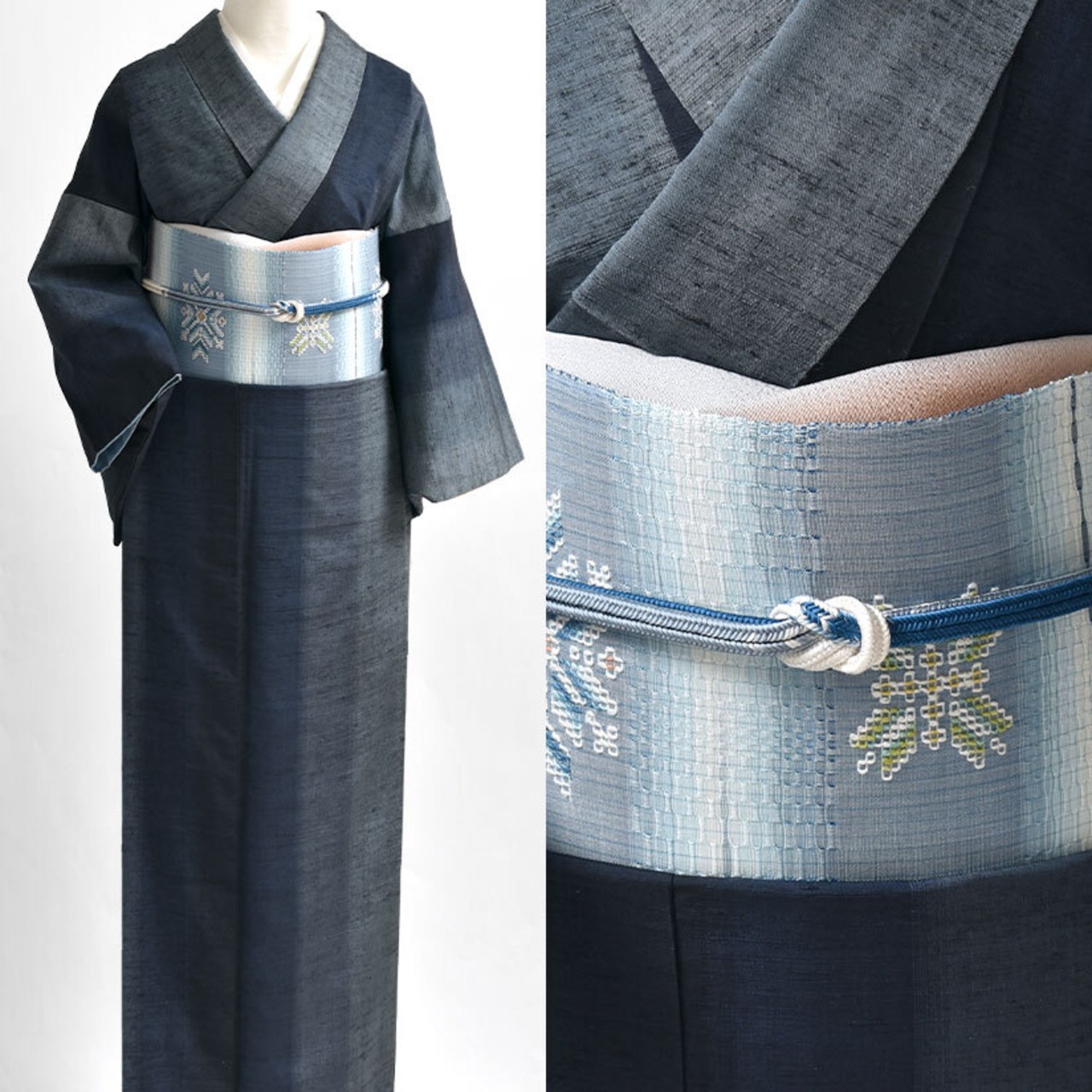 また灰青の面を、濃い色のお着物や帯に合わせても
