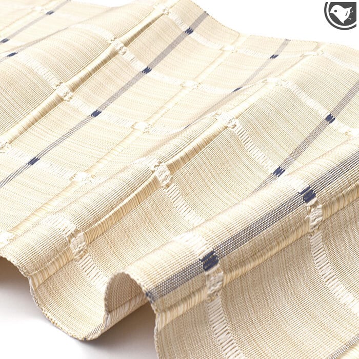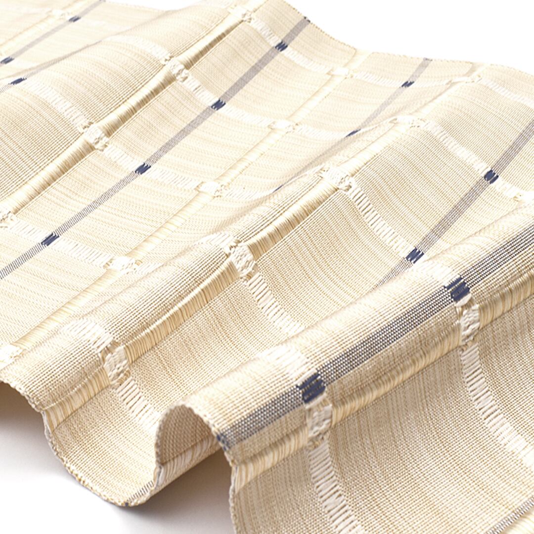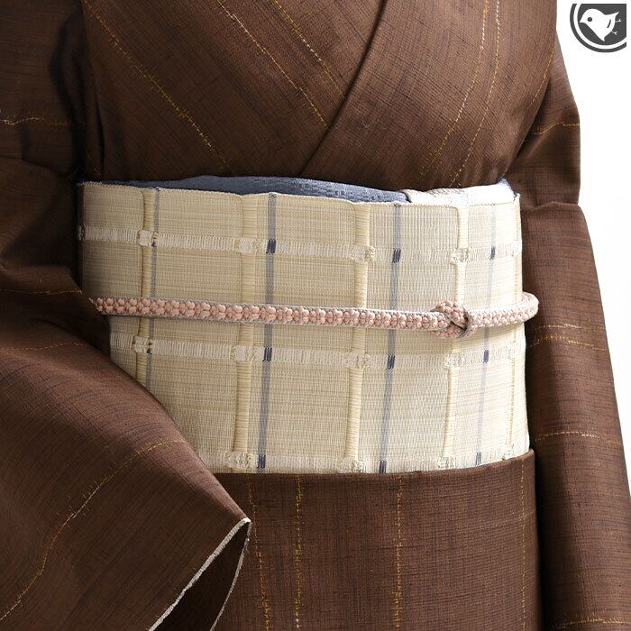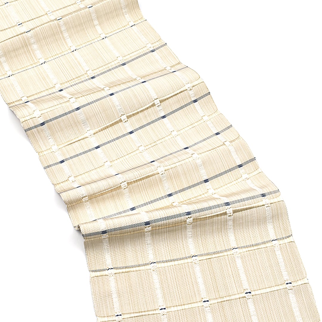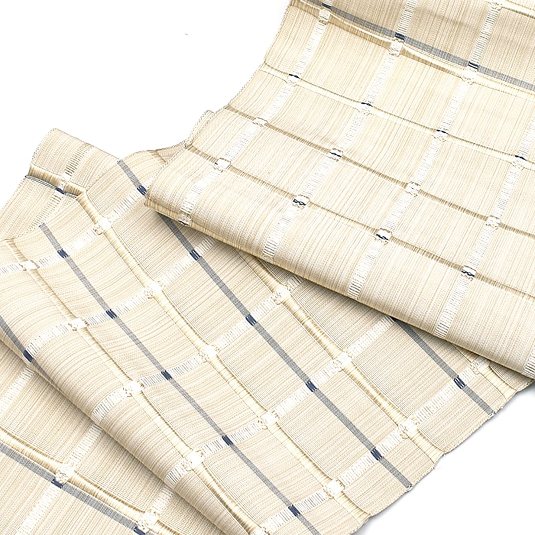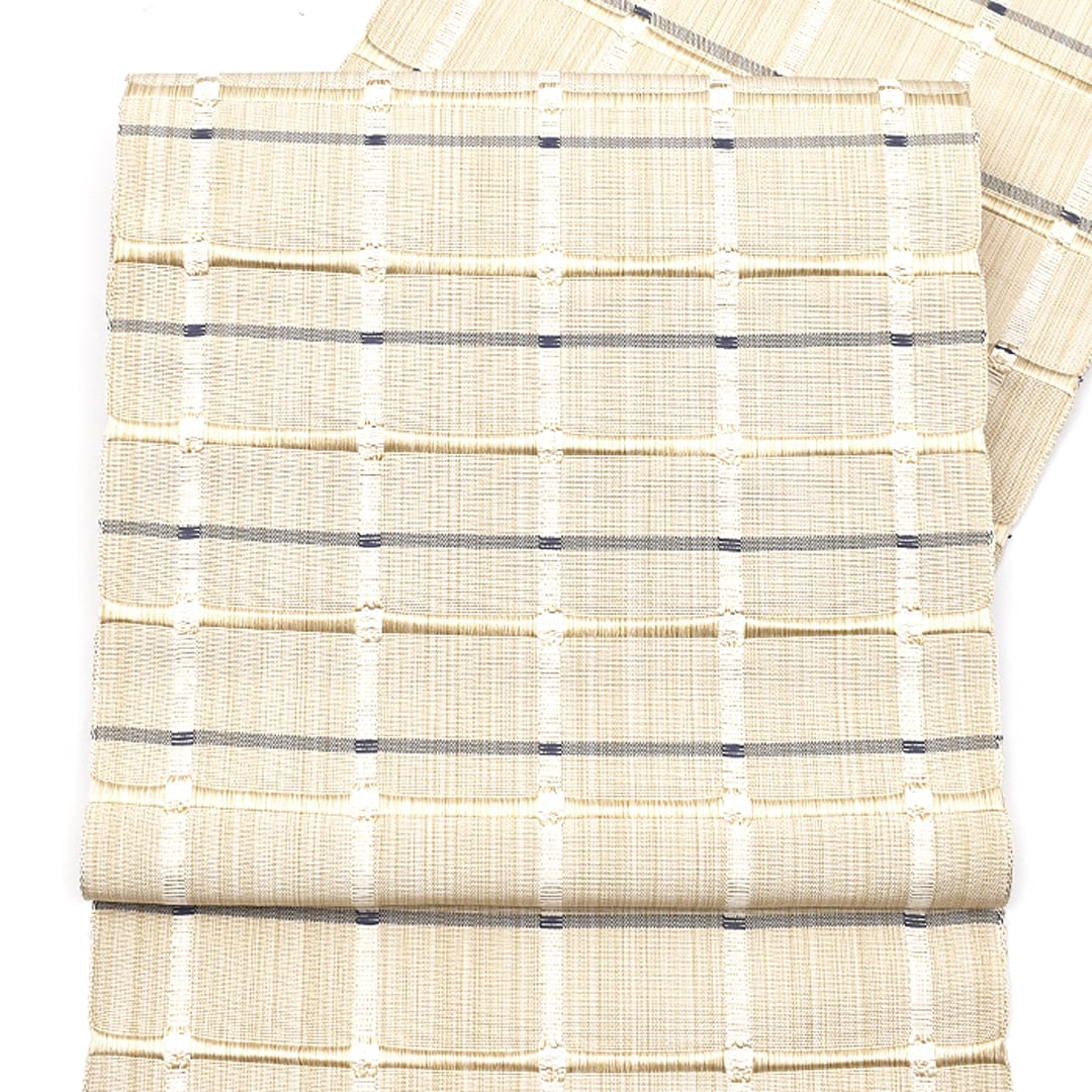[名古屋帯]米沢紬 名門 近賢織物 謹製 吉野紙格子 八寸帯 絹和紙 日本製(商品番号:21918)
