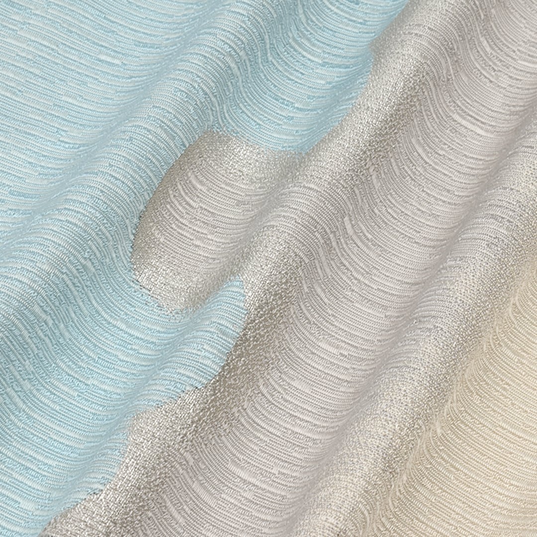 細い絹の番手にて、繊細に織り込まれて