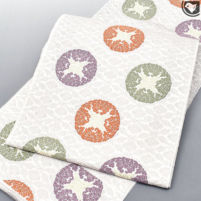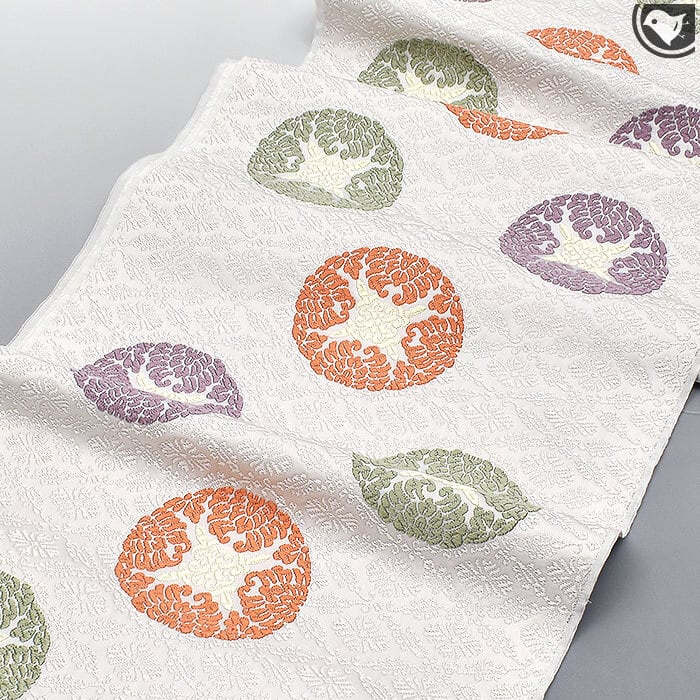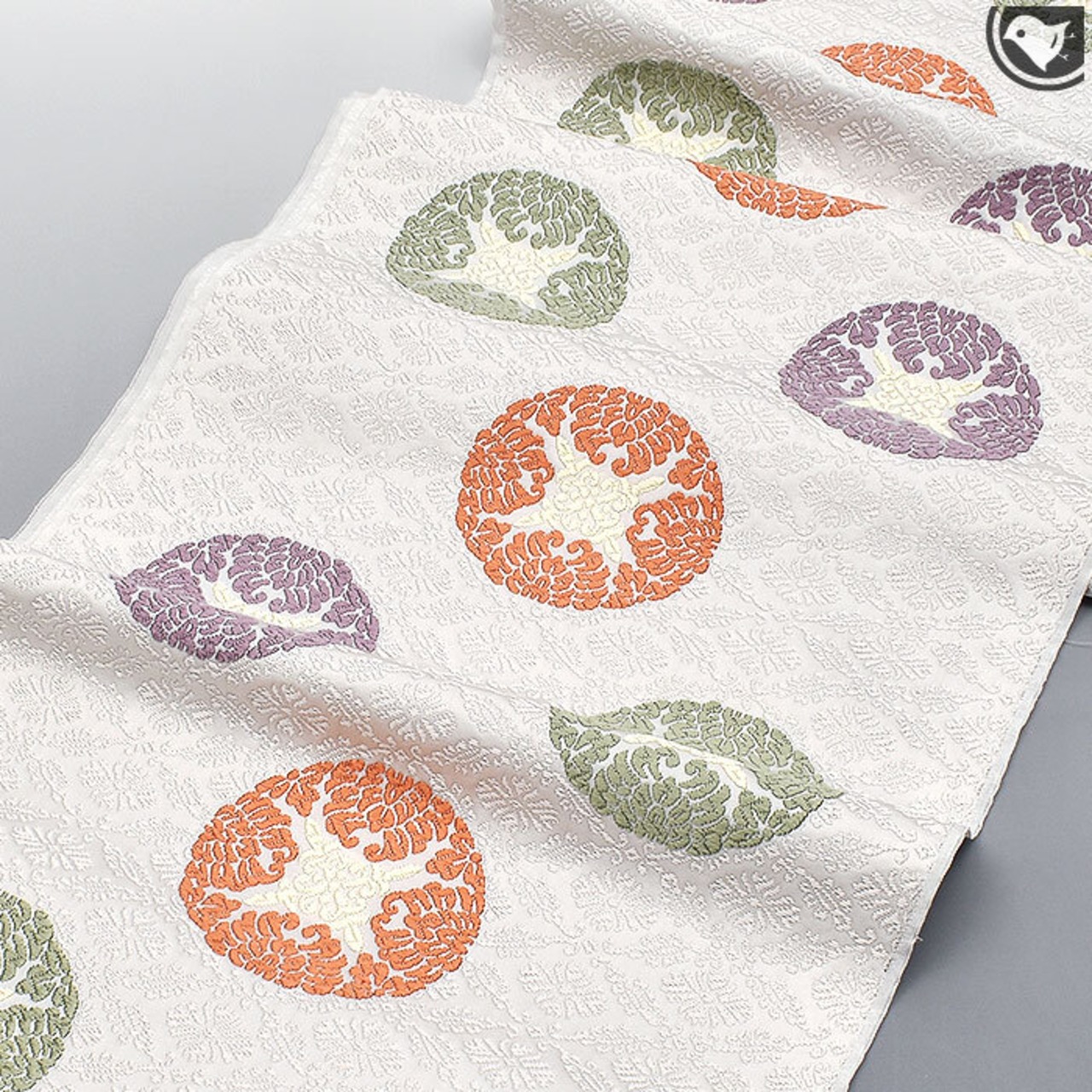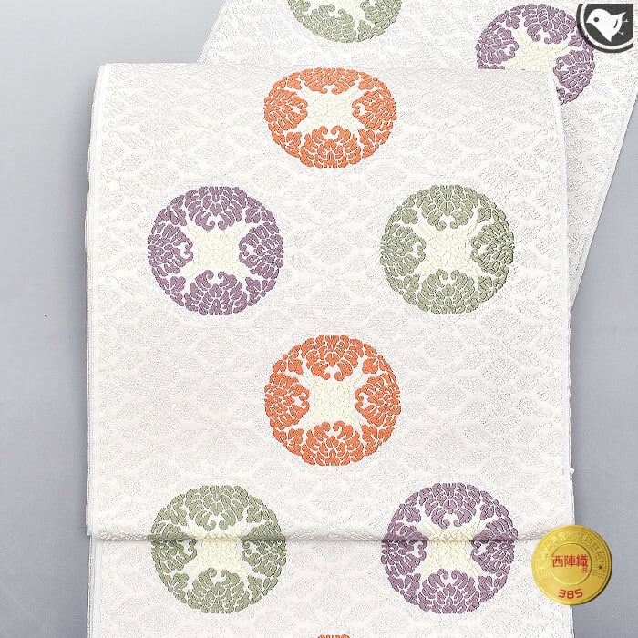 [名古屋帯]西陣 老舗 都 謹製 唐織 正倉院 浮線綾菱文 九寸帯 正絹 日本製(商品番号:21928)