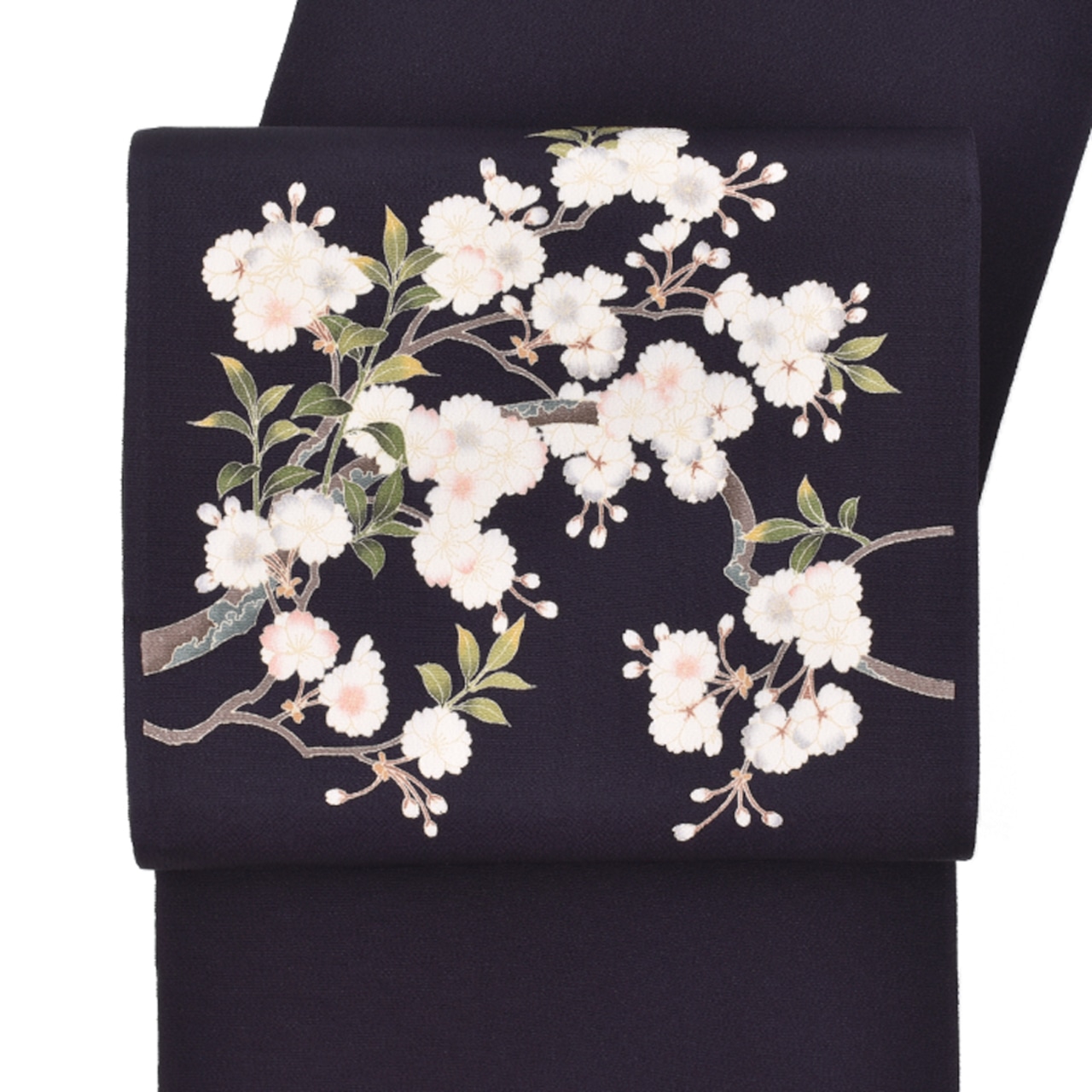 [名古屋帯]十日町友禅染め 名門 秀美 謹製 桜文様 九寸帯 正絹 日本製(商品番号:21931)
