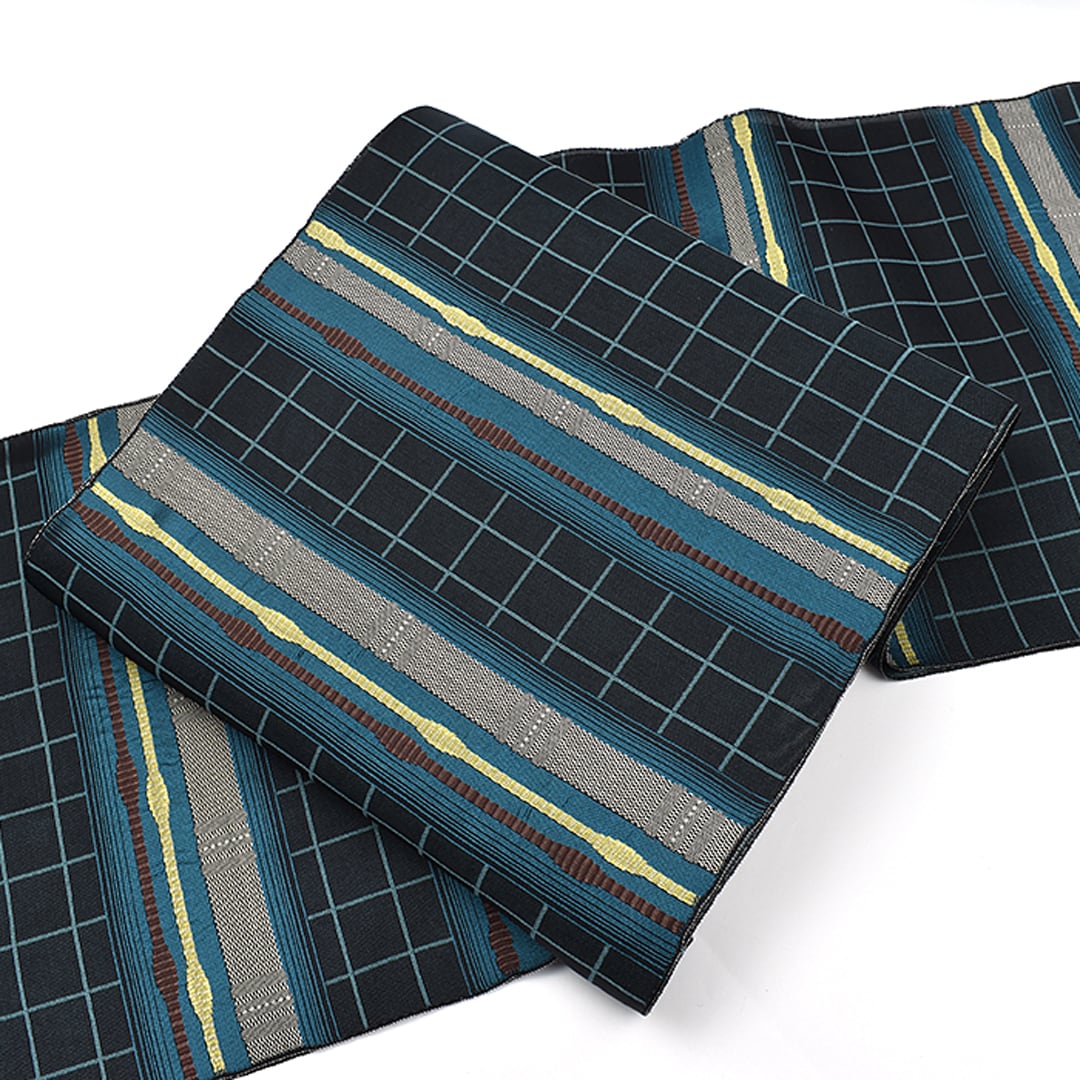 吉野間道格子 九寸 名古屋帯