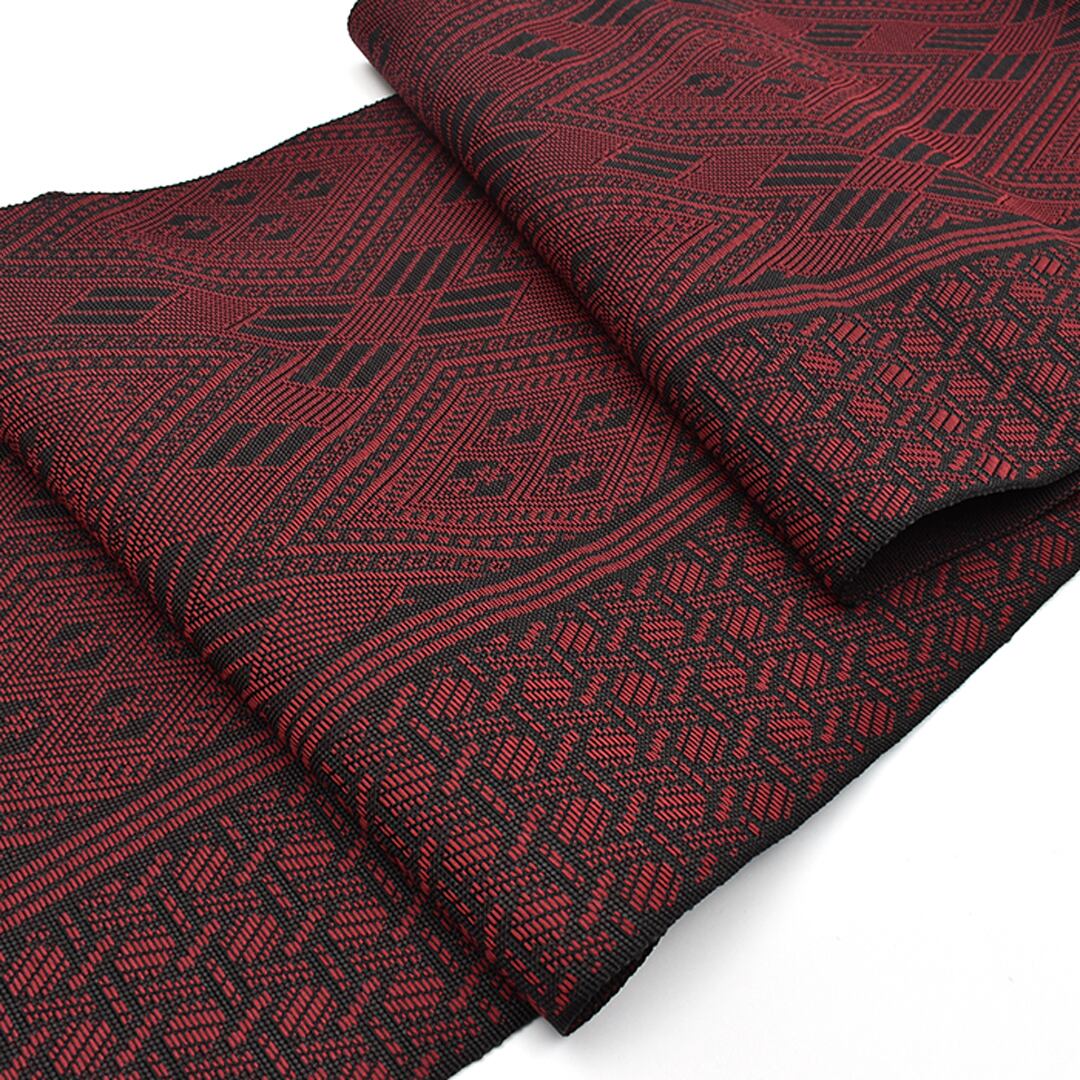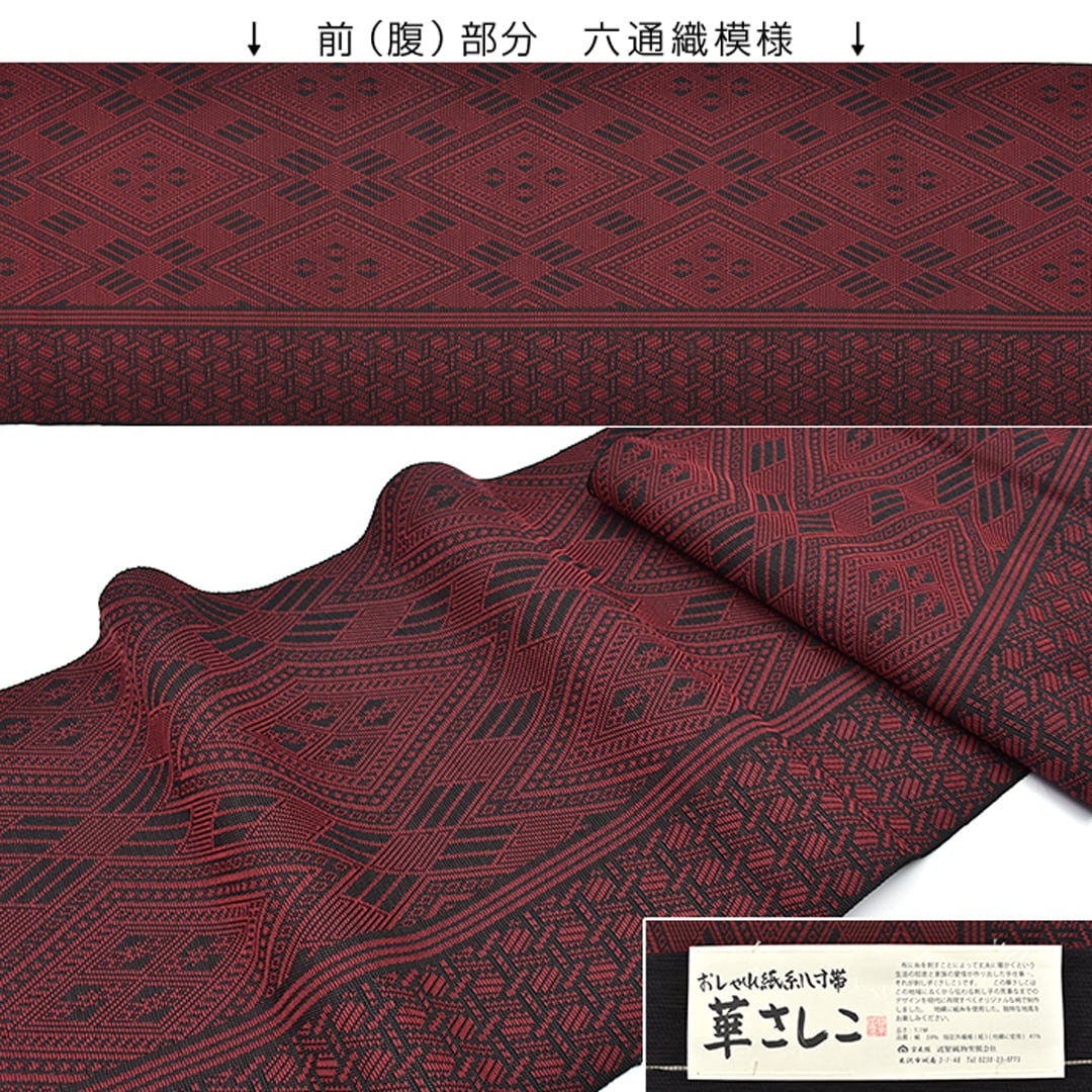 [名古屋帯]米沢紬 名門 近賢織物 謹製 華さしこ 八寸帯 絹和紙 日本製(商品番号:21961)