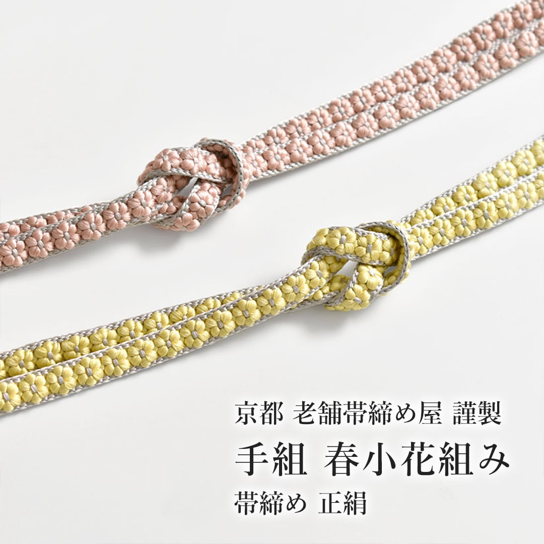 [帯締め]京都 老舗 帯締屋 謹製 丸台 手組 春小花組 杉本の撚り房 正絹 日本製 (商品番号:18507)