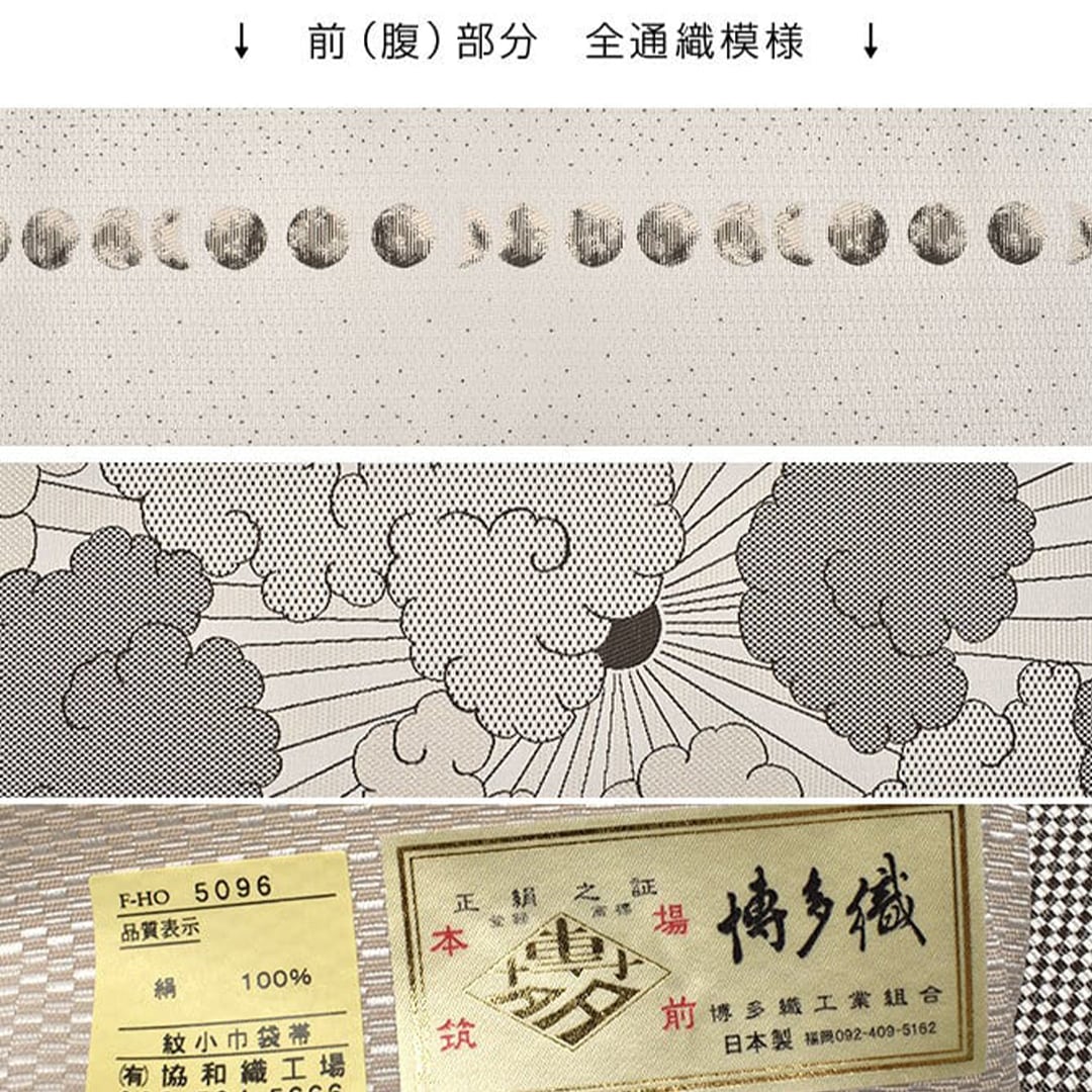 [半幅帯]博多織 老舗 協和織 謹製 月の満ち欠け 両面柄 正絹 日本製(商品番号:22018)