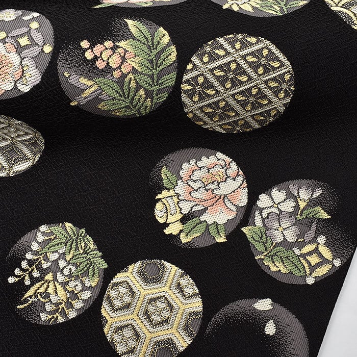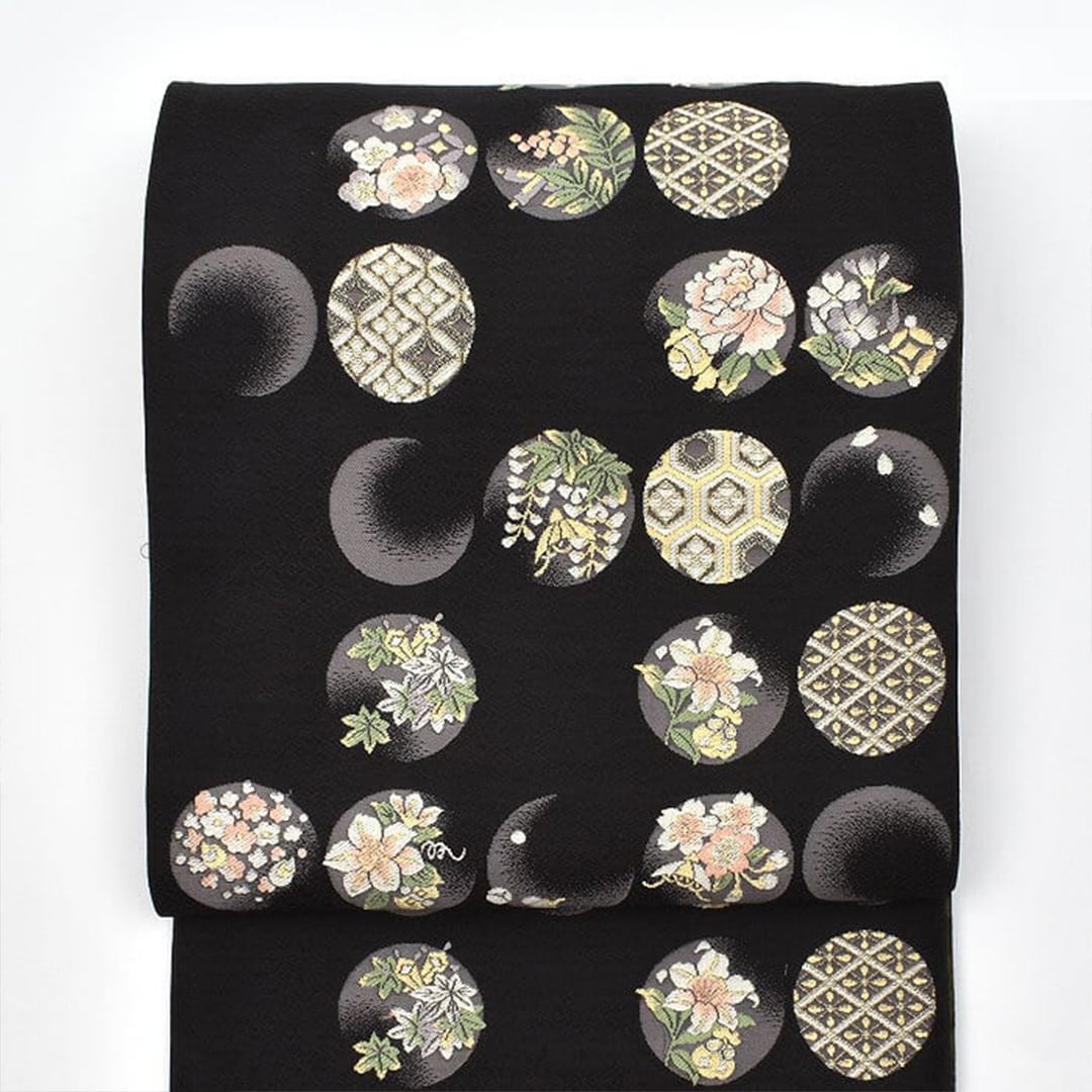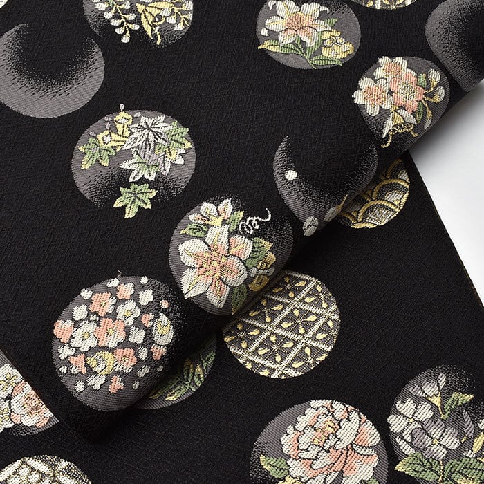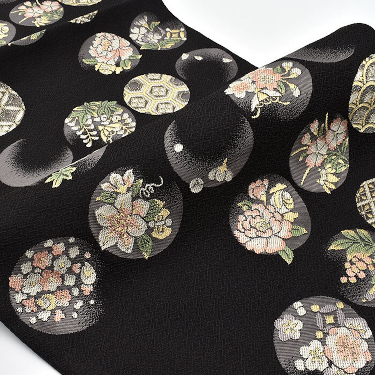 [袋帯]西陣織老舗機屋 謹製 宝尽くし四季花文様 両面柄 正絹 日本製(商品番号:22038)