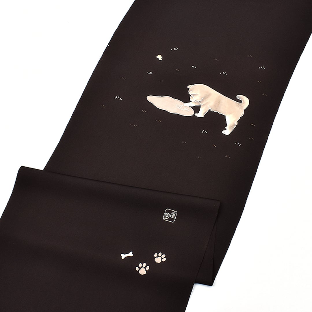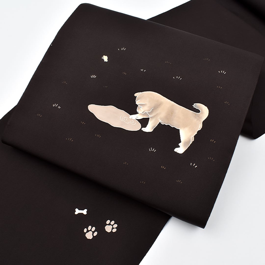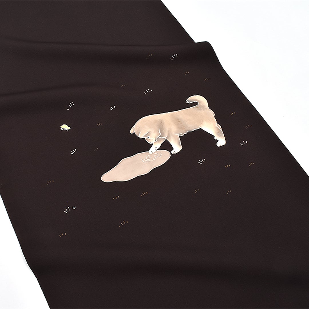 塩瀬帯 東京手書友禅 犬と水溜まり