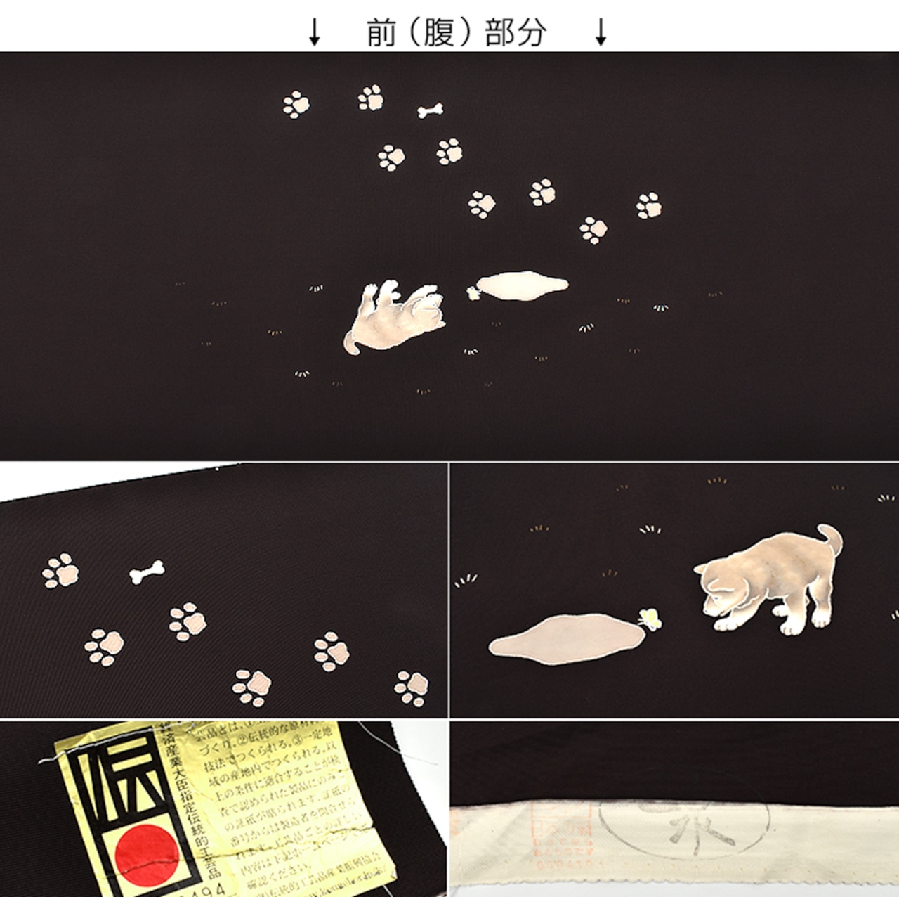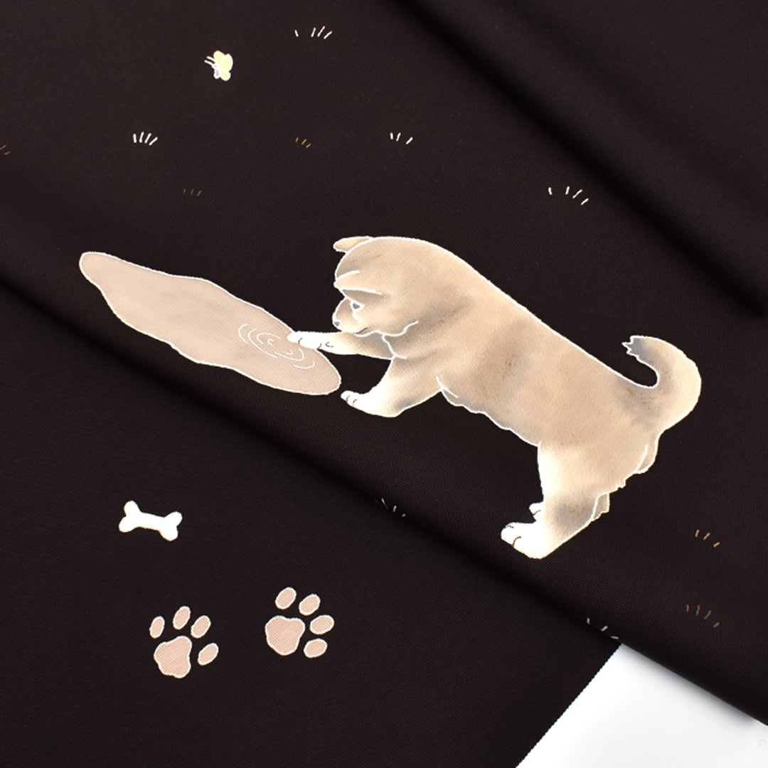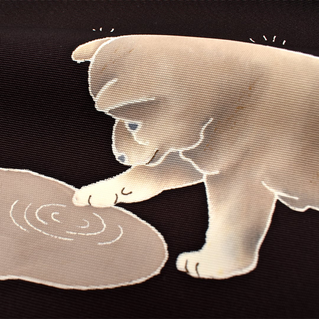 塩瀬帯 東京手書友禅 犬と水溜まり