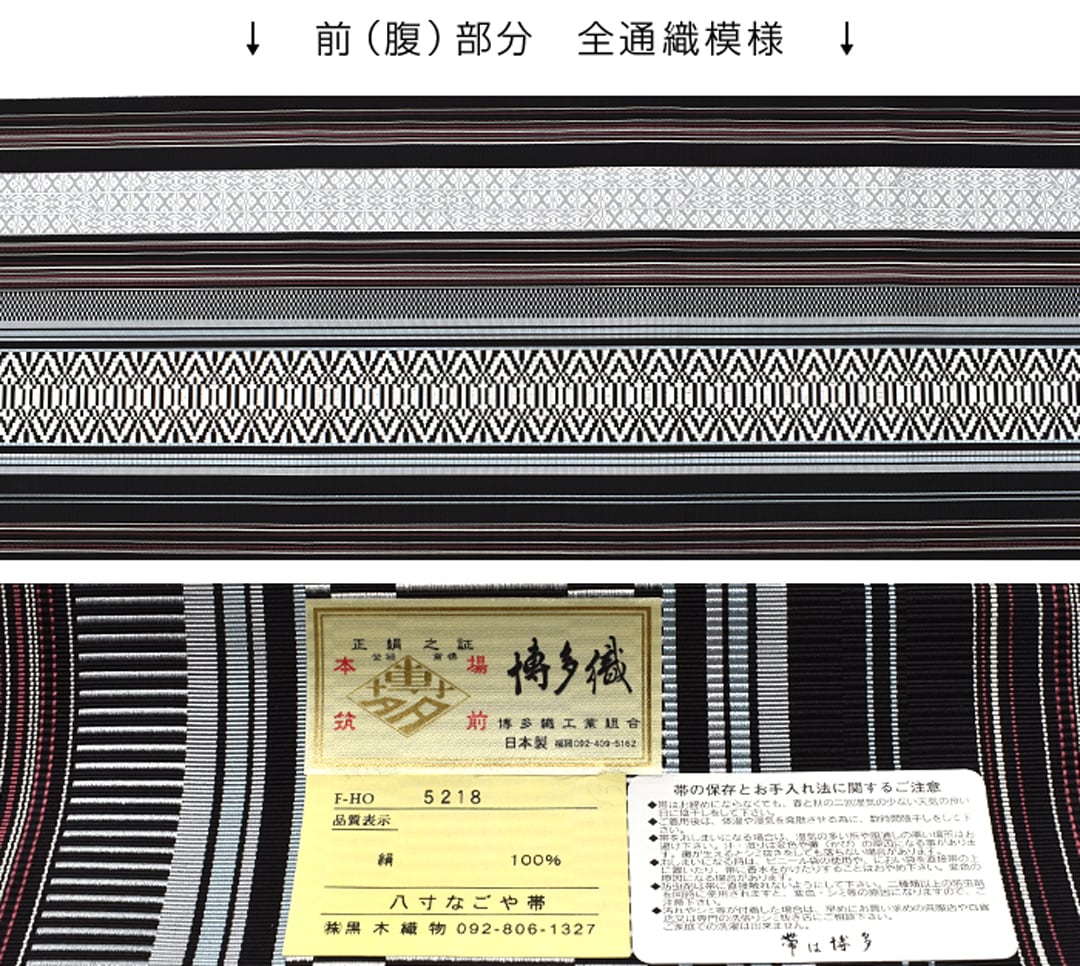 [名古屋帯]博多織 黒木織物 謹製 献上柄 八寸帯 正絹 日本製(商品番号:22113)