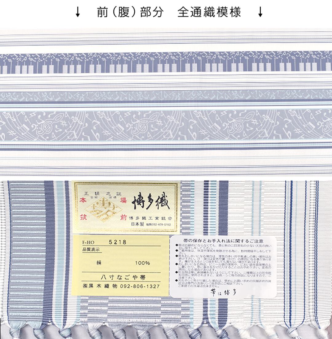 [名古屋帯]博多織 黒木織物 謹製 鍵盤/音譜 八寸帯 正絹 日本製(商品番号:22111)