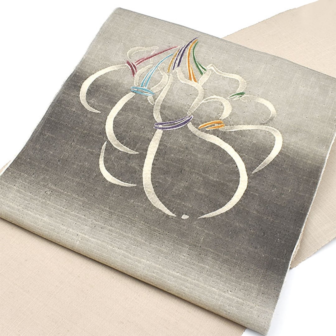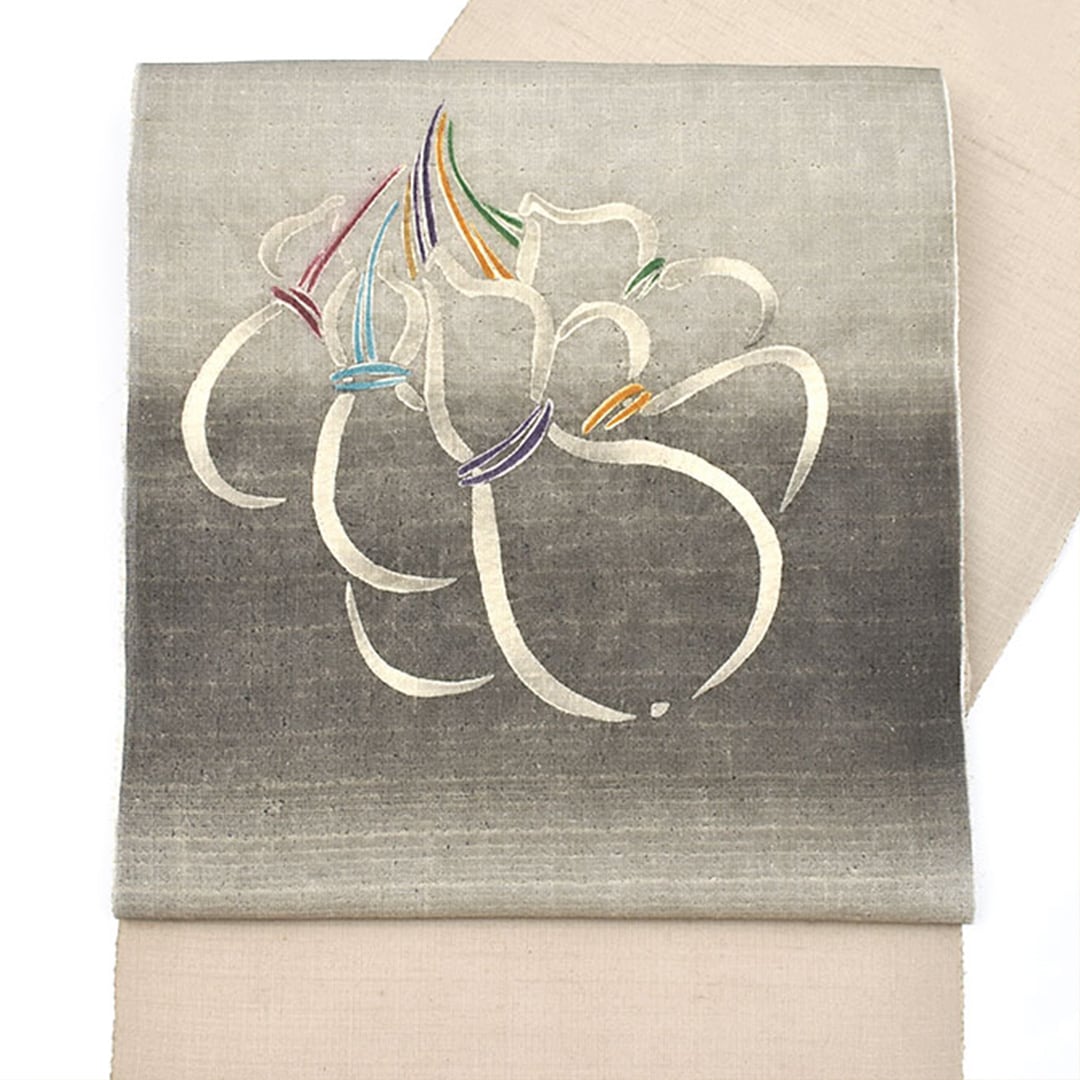 [名古屋帯]伝統工芸士 西川治郎 作 絞り染め ひょうたん 紬地 九寸帯 正絹 日本製(商品番号:22126)