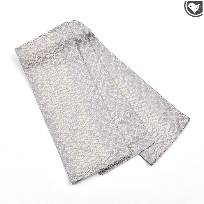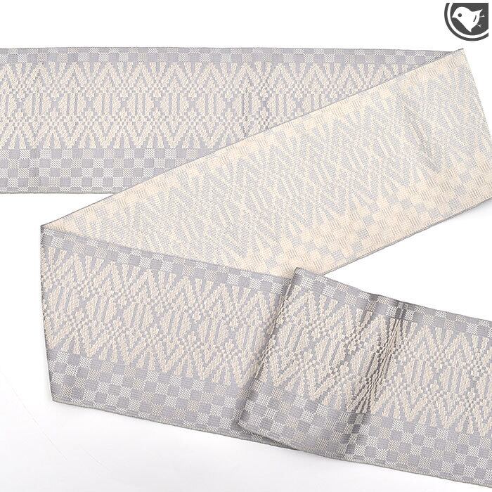 [半幅帯](仕立て上がり)博多織 名門 黒木織物 謹製 献上市松文 正絹 日本製(商品番号:21768)