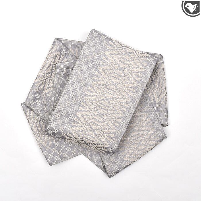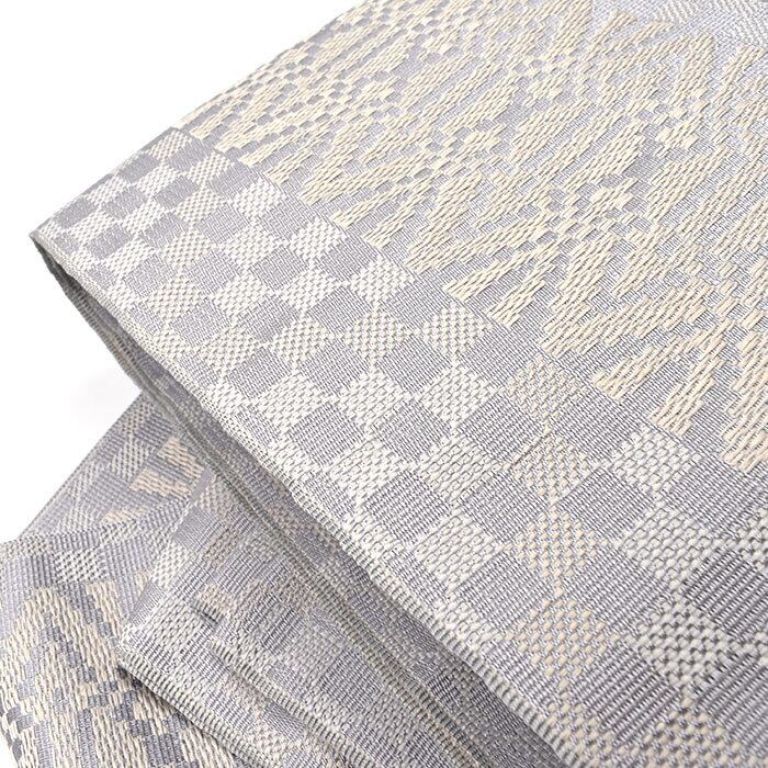 ・半幅帯・全通柄模様・素材:絹×麻