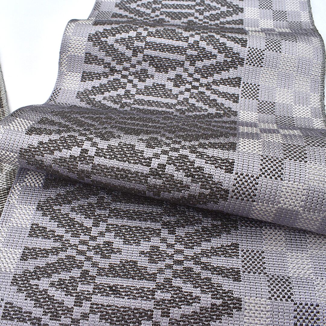 ・半幅帯・全通柄模様・素材:絹×麻