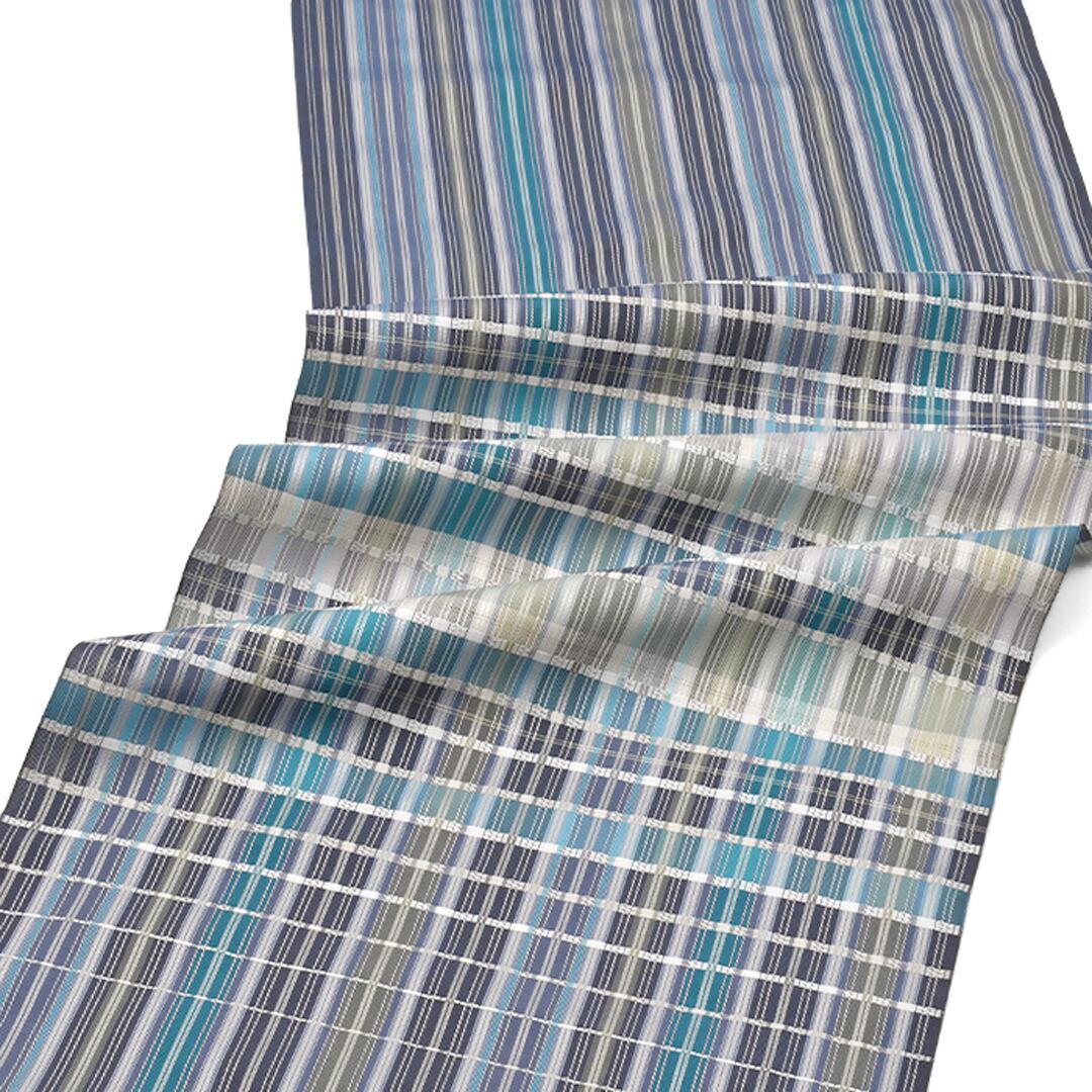 [名古屋帯]博多織 名門 西村織物 謹製 絹乃道 縞暈し 九寸帯 正絹 日本製(商品番号:22089)