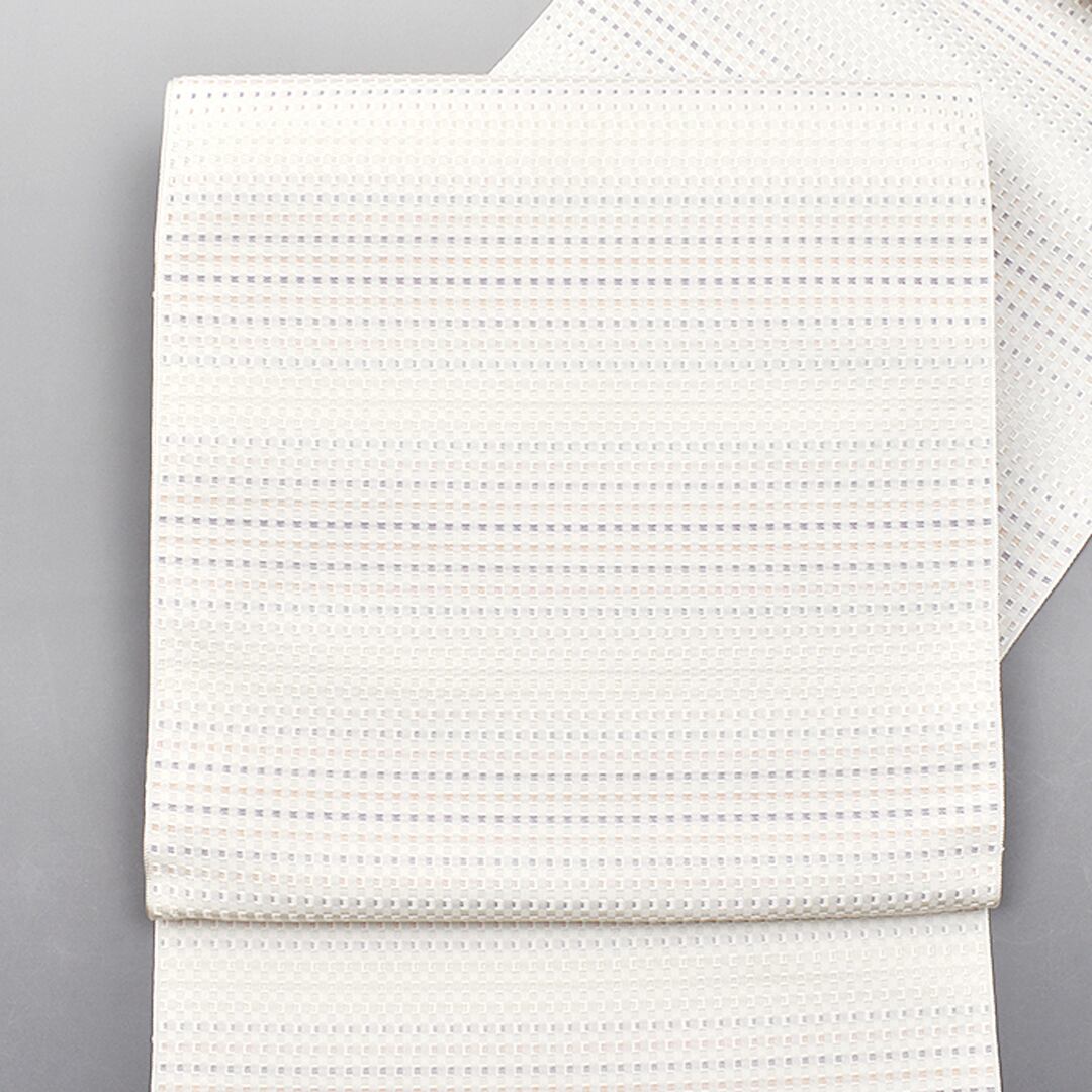 [名古屋帯]博多織 協和織工場 謹製 駒格子段色紋様 八寸帯 正絹 日本製(商品番号:22098)