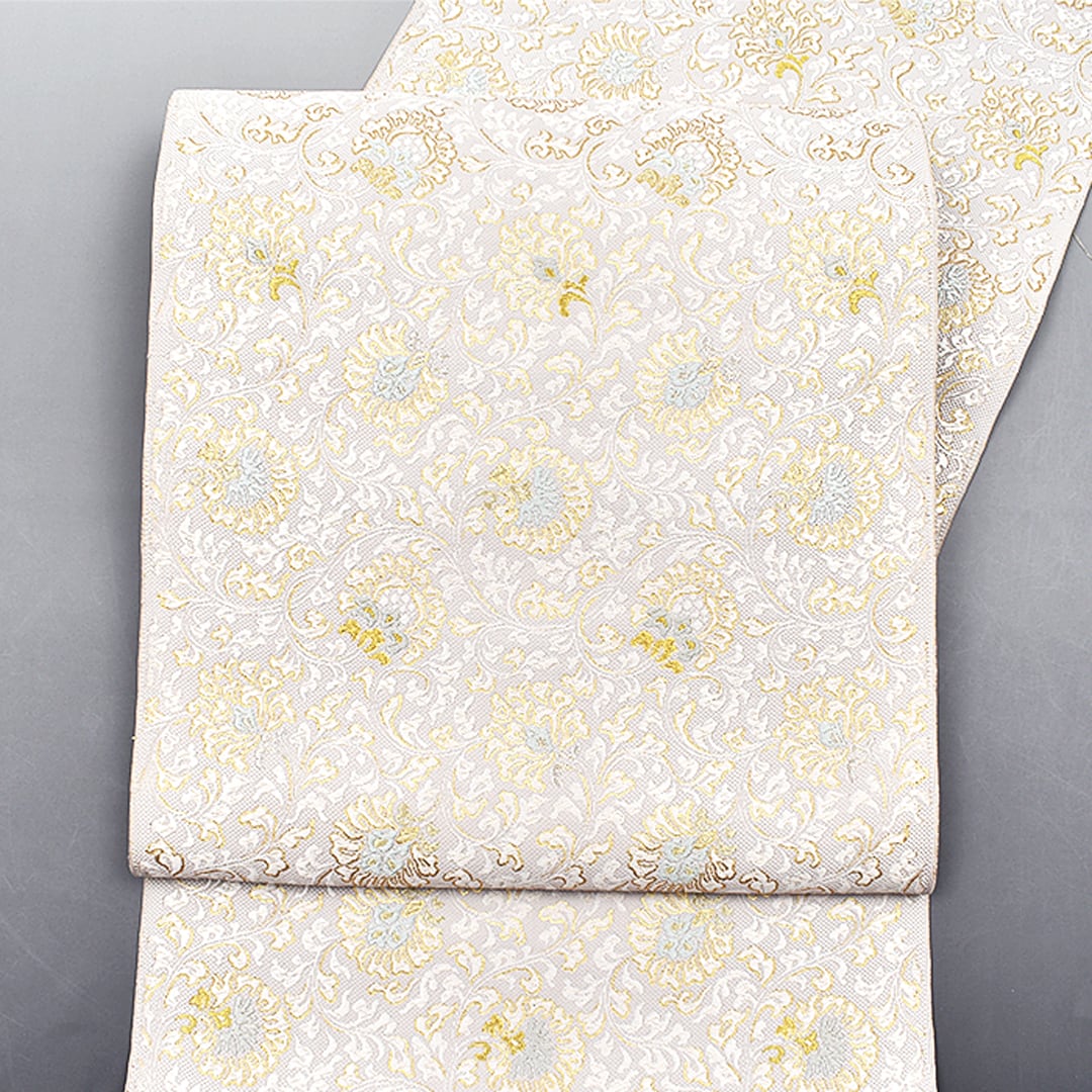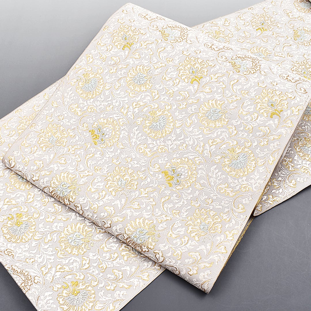[名古屋帯]西陣織 老舗 ふくい 謹製 篠屋宗兵衛 唐織り 唐花文様 九寸帯 正絹 日本製(商品番号:22004)