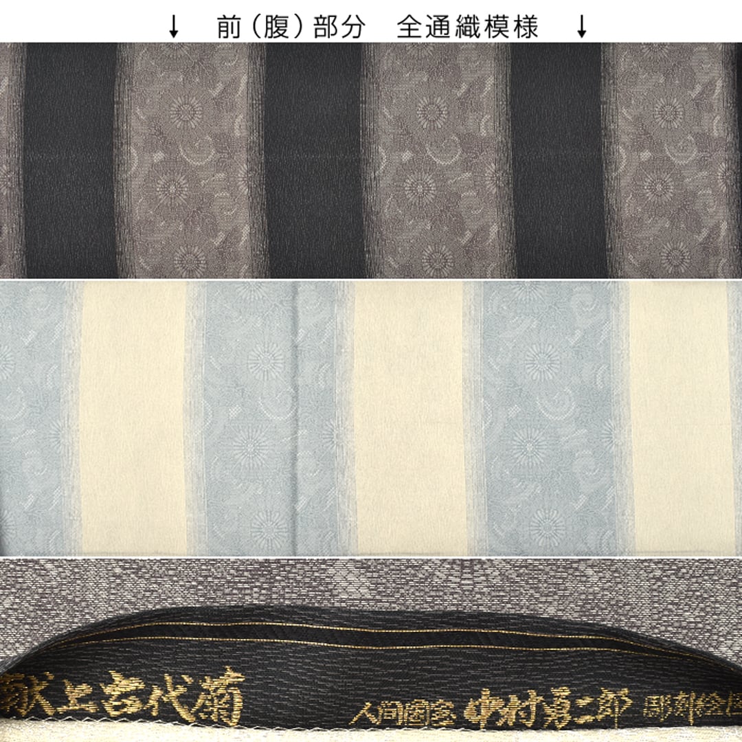 [袋帯]【中古帯】(お仕立て上がり)人間国宝 中村勇二郎 彫刻絵図文 献上古代菊 両面柄 正絹 日本製(商品番号:21936)