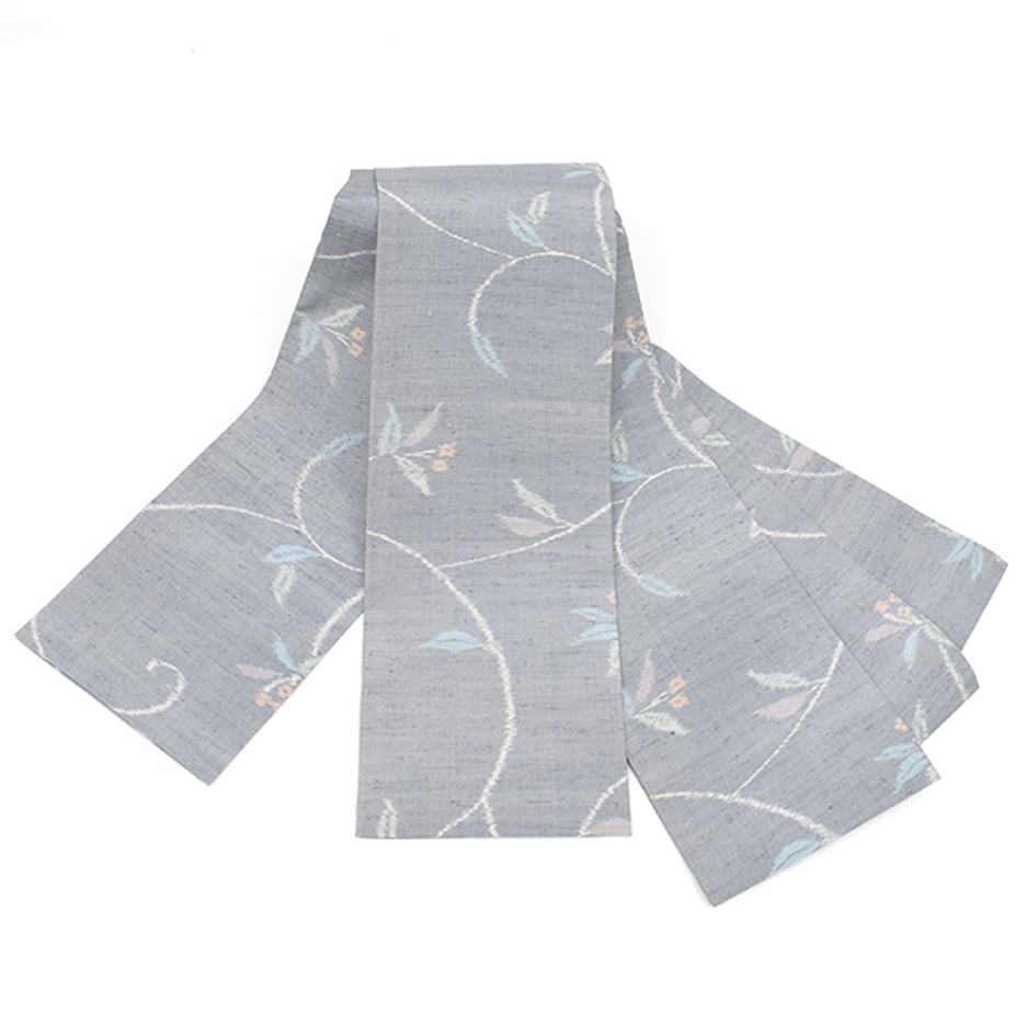[半幅帯]【長尺/広幅】(お仕立て上がり)越前 真綿紬 絣文様 正絹 綿 日本製(商品番号:19193)