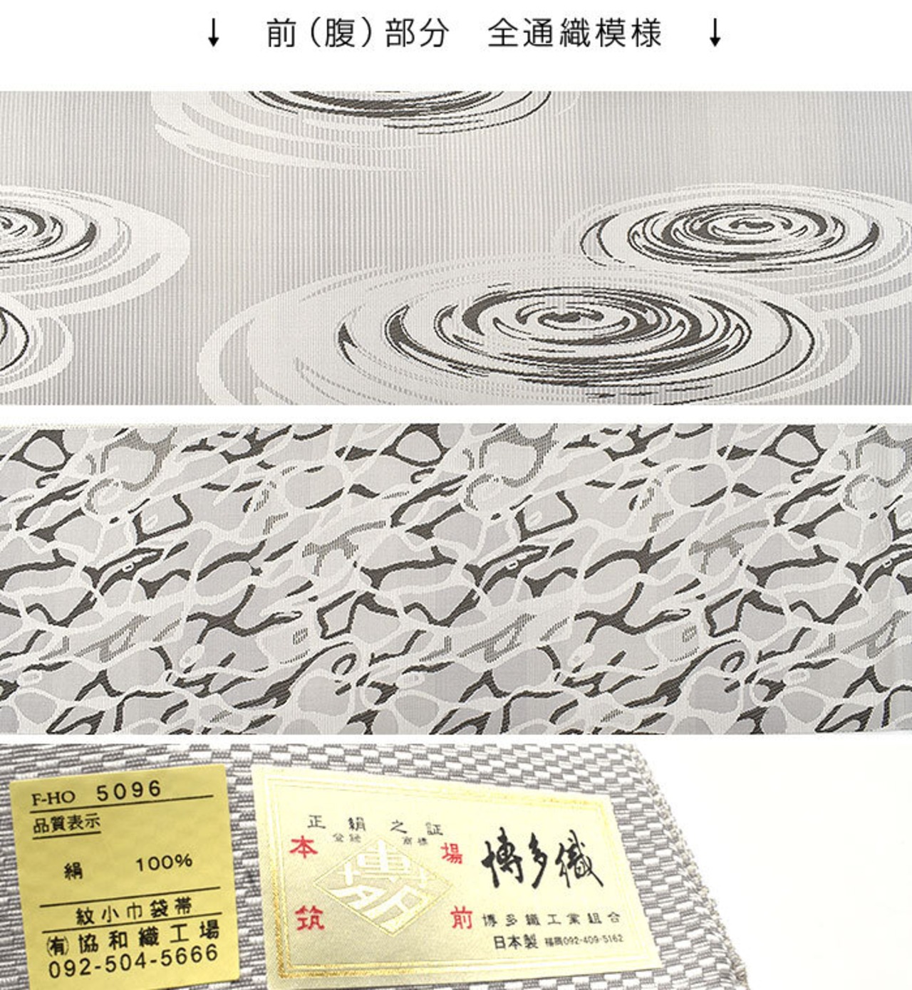 [半幅帯]博多織 協和織工場 謹製 観世水 両面柄 日本製(商品番号:22182)