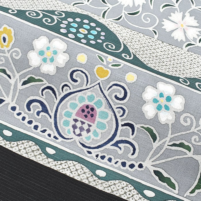 [名古屋帯]京型染め ボタニカル文様 九寸帯 正絹 日本製(商品番号:22180)