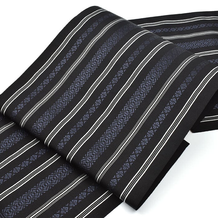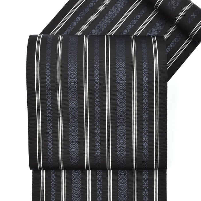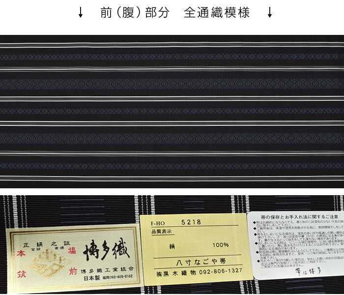 [名古屋帯]博多織 名門 黒木織物 謹製 黒木の五献上 八寸帯 正絹 日本製(商品番号:22186)