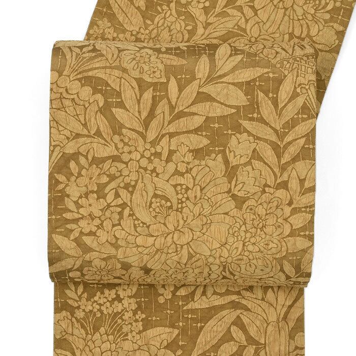 [袋帯]西陣織 老舗 渡文 謹製 纐纈 草花文 両面柄 正絹 日本製(商品番号:22177)