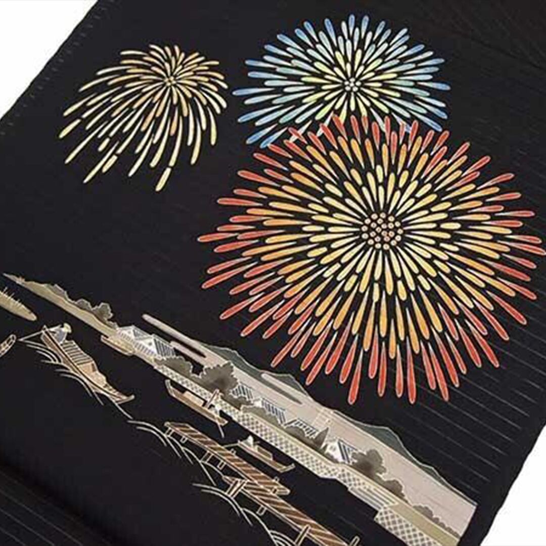 「花火に屋形船」 という組み合わせの柄は