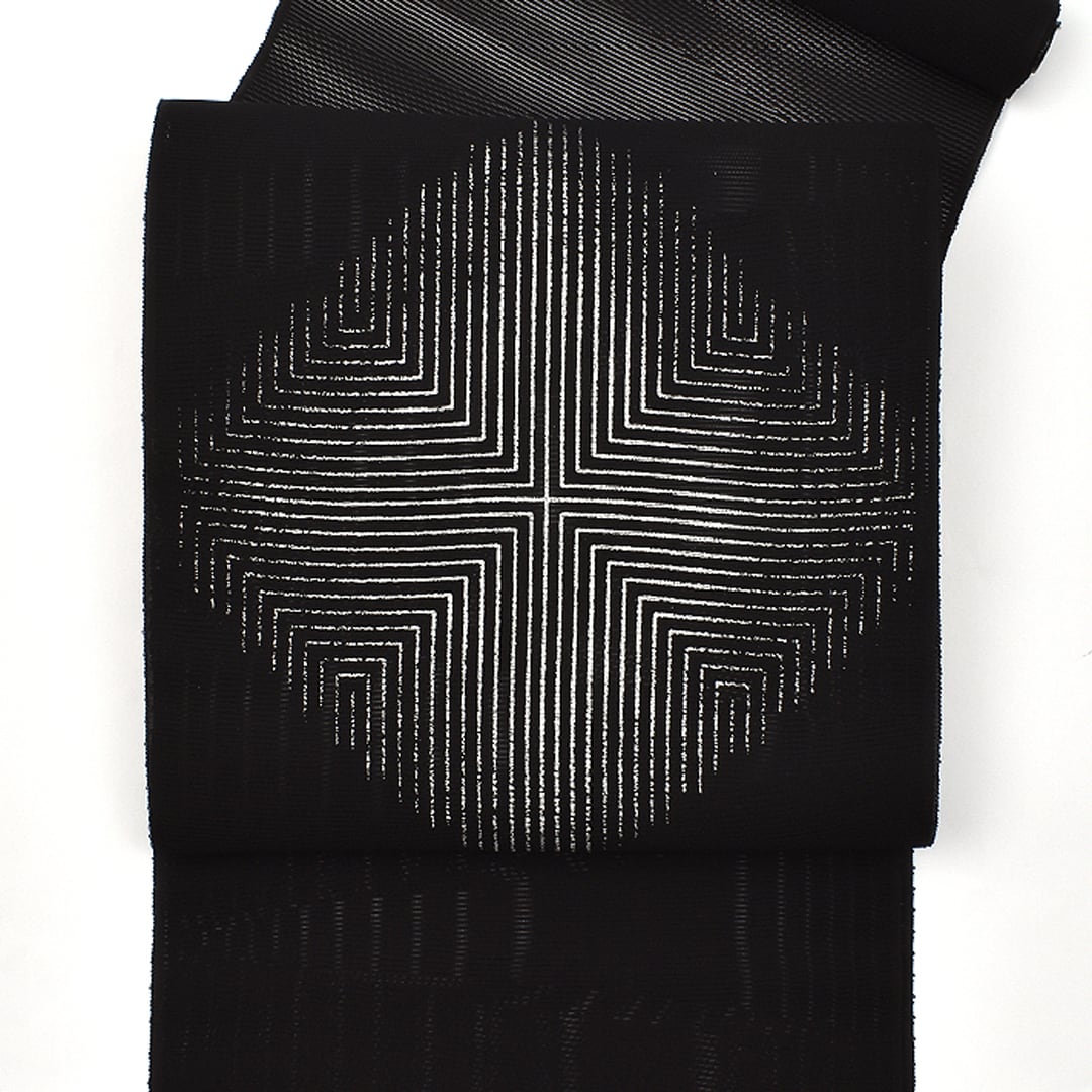 [名古屋帯](単衣/夏)西陣織 誉田屋源兵衛 謹製 銀箔菱 九寸帯 正絹 日本製(商品番号:22208)