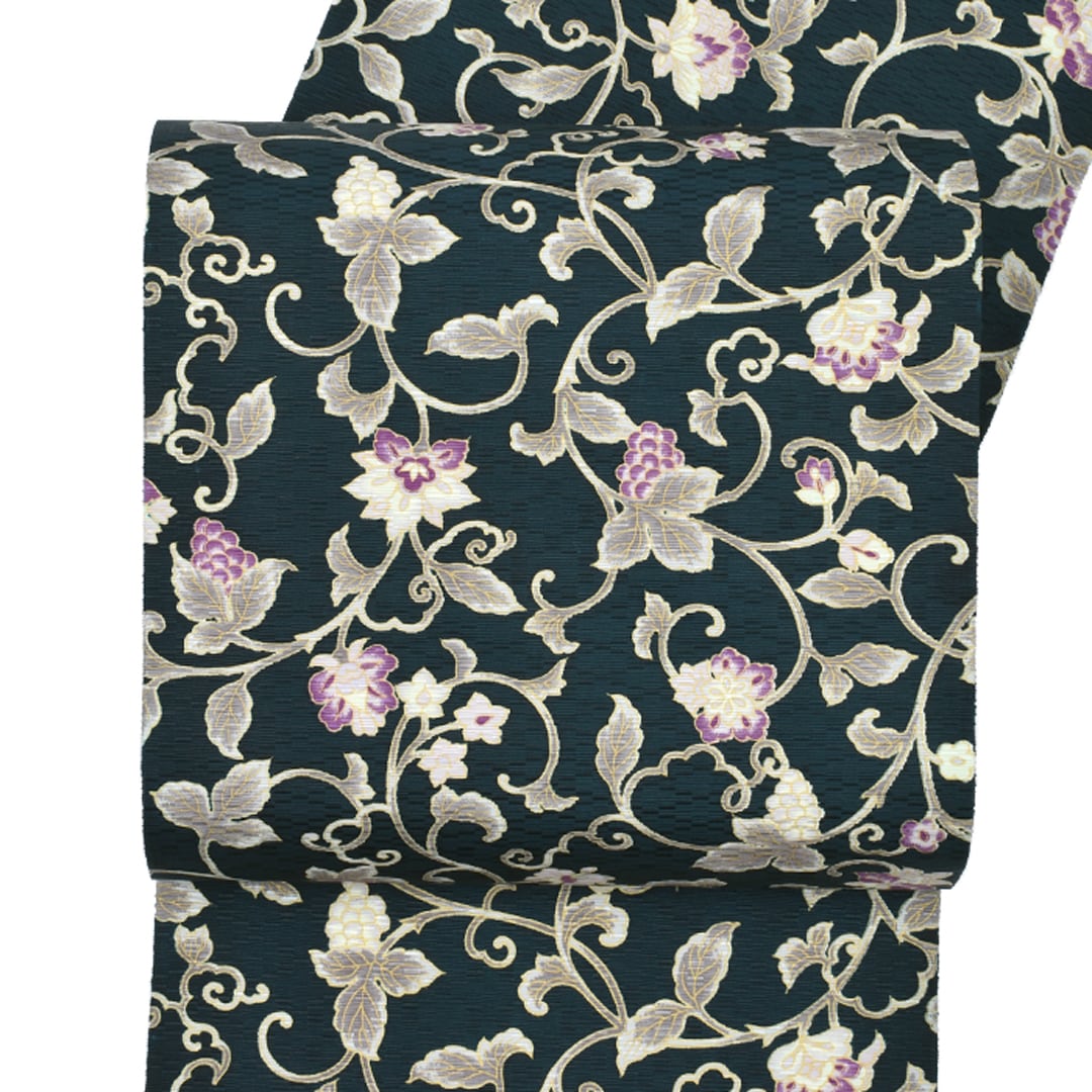 [名古屋帯]京の名門 岡重 謹製 岡重更紗 博多織 八寸帯 正絹 日本製(商品番号:22196)