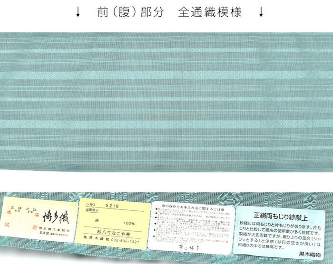 [力士の帯]【刺繍の名入れオプション有】博多帯(夏用) 黒木織物 謹製 紗献上『山藍』五献上柄 もじり織 金印 正絹 日本製 力士用 角帯(商品番号:22238r)