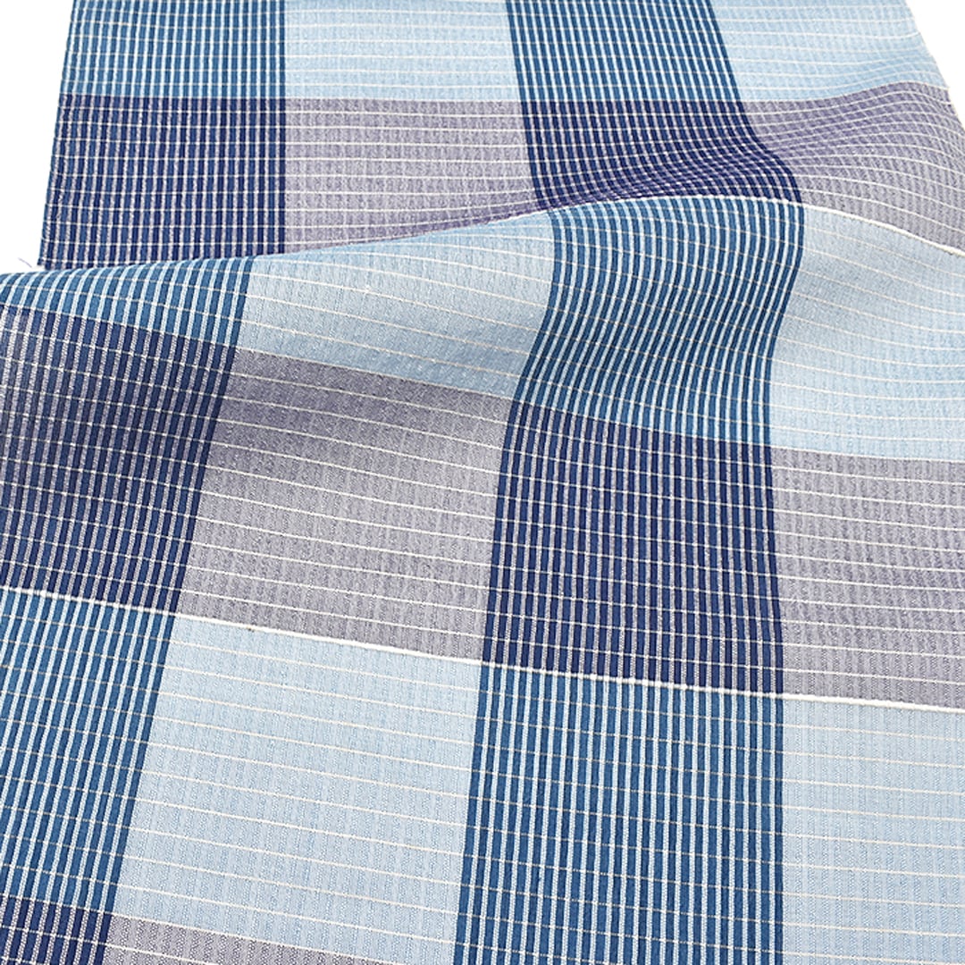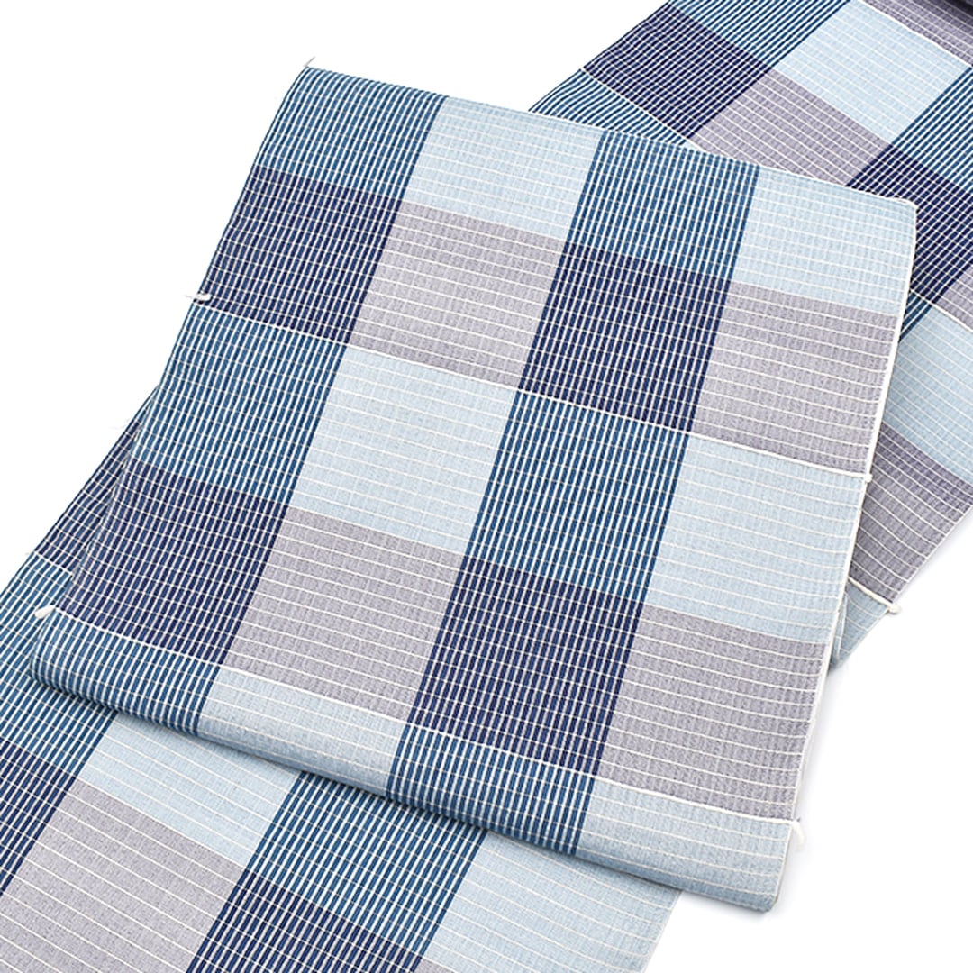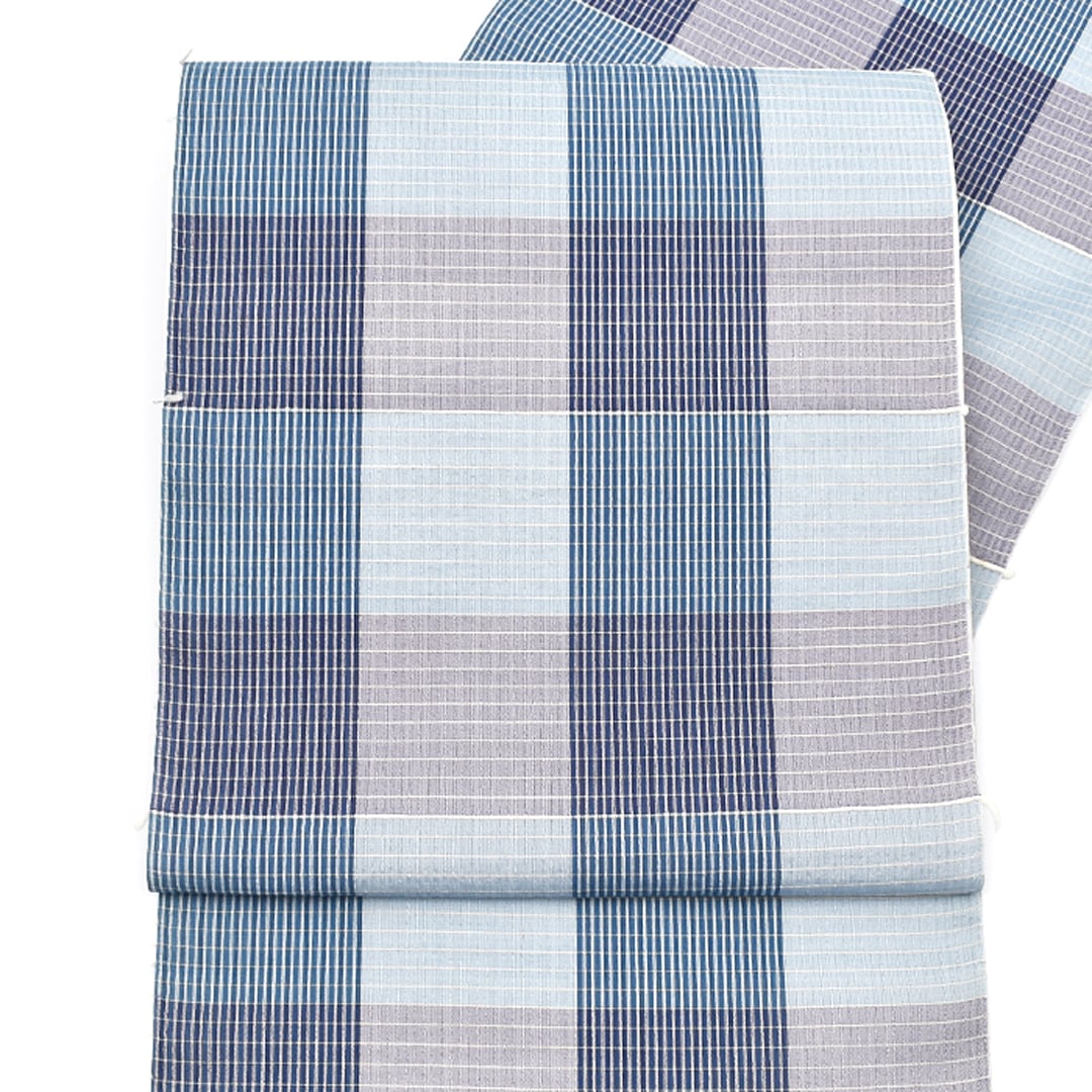 [名古屋帯](単衣/夏)琉球藍 麻絹 駒格子 九寸帯 正絹 日本製(商品番号:22223)