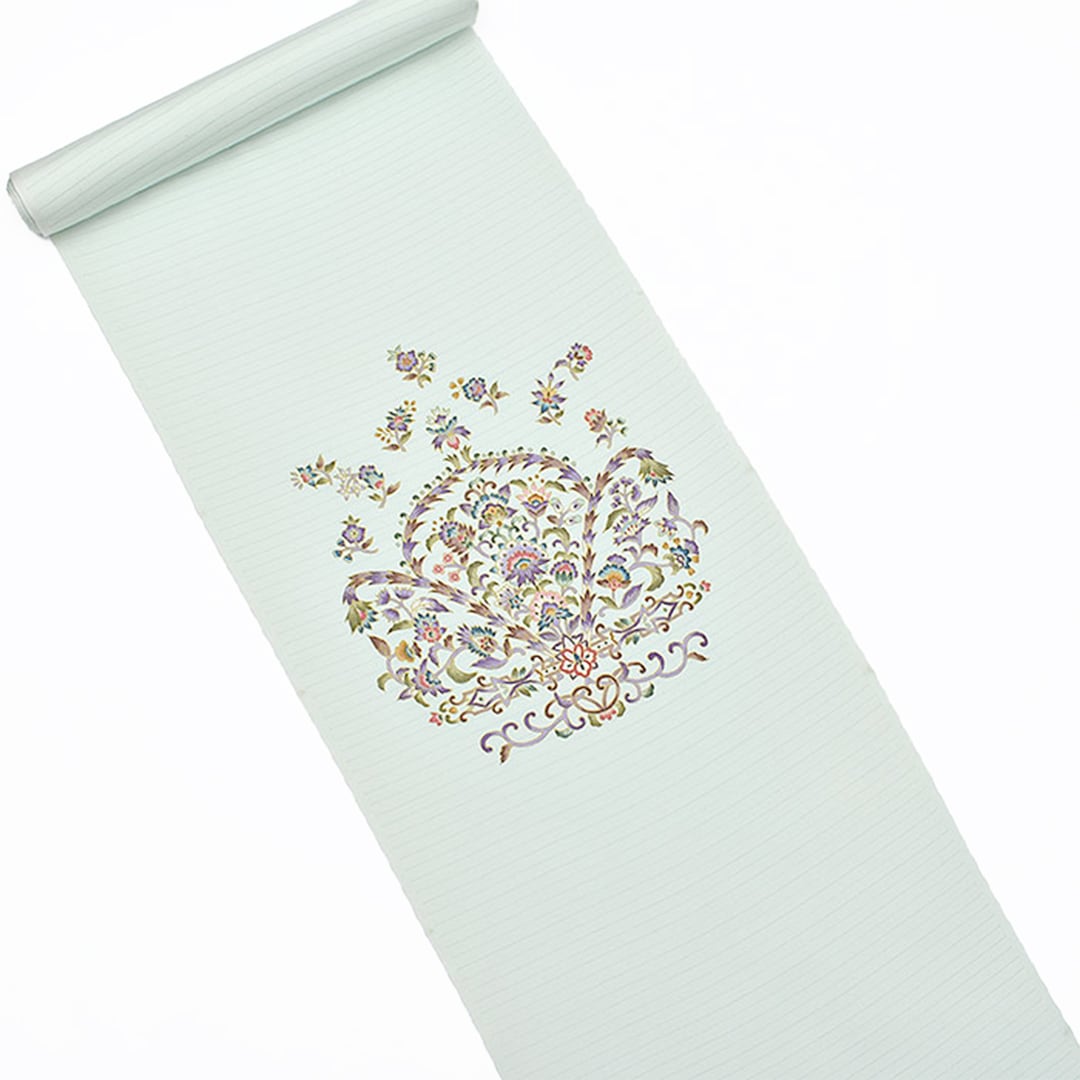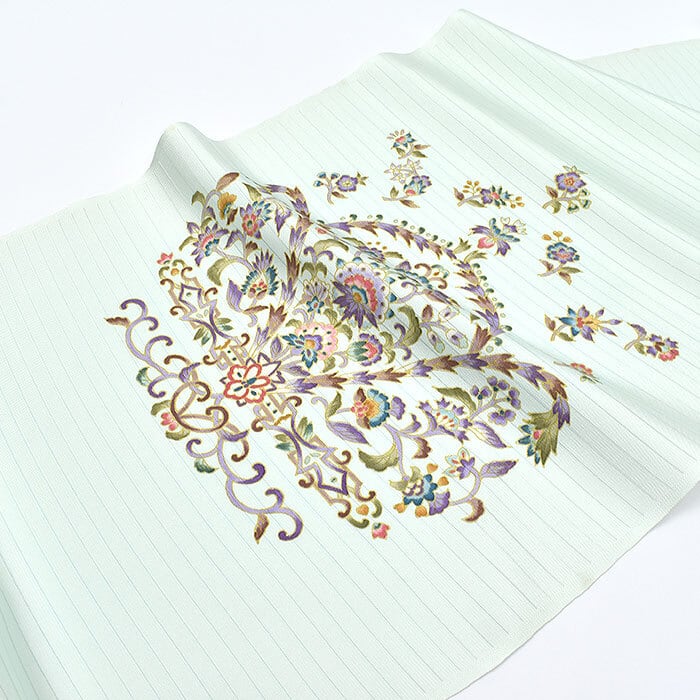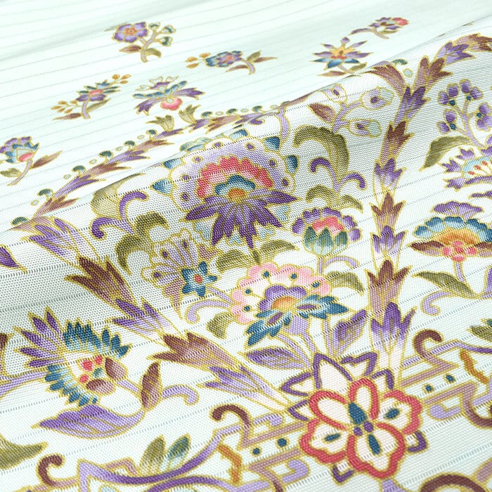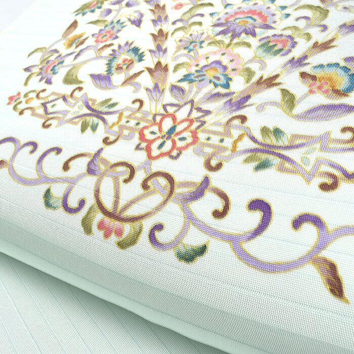 [名古屋帯](単衣/夏)絽塩瀬 京都老舗 岡重 謹製 岡重更紗 九寸帯 正絹 日本製(商品番号:22290)