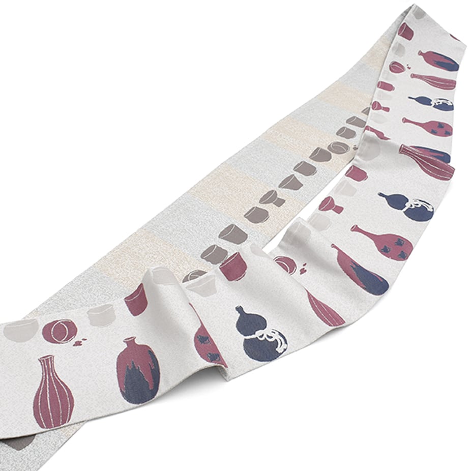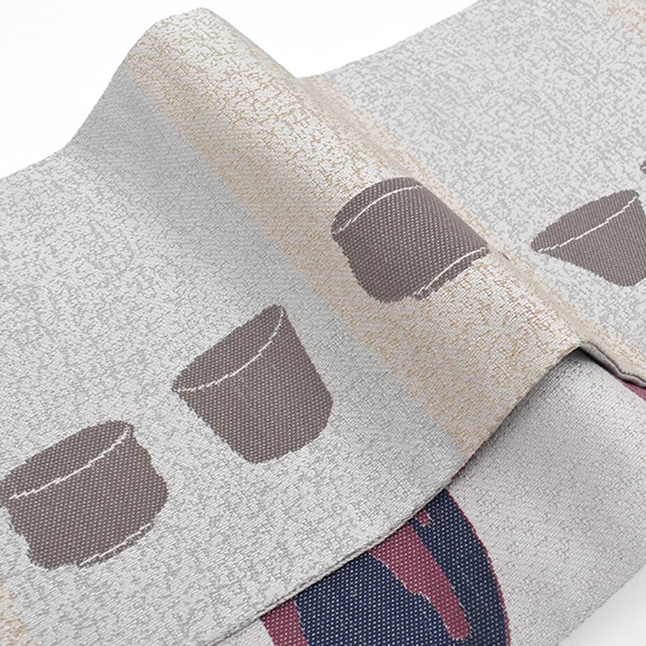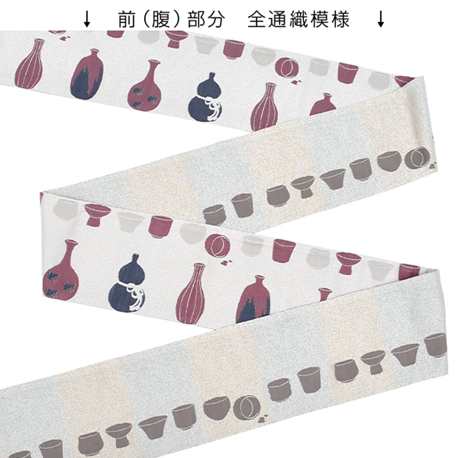 [半幅帯]西陣織 西陣老舗機屋 謹製 京友禅 切り絵作家 図案『酒器 徳利』両面柄 正絹 日本製(商品番号:18882)