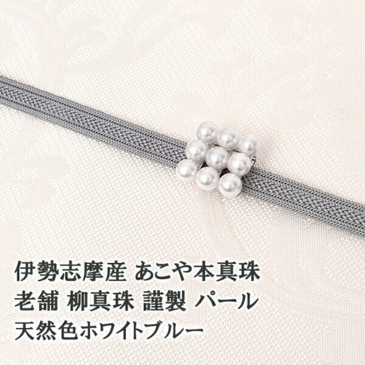 [帯留め]伊勢志摩産 あこや本真珠 老舗 柳真珠 謹製 天然色ホワイトブルー 日本製 パール(商品番号:17911) お仕立て代込み!送料無料!