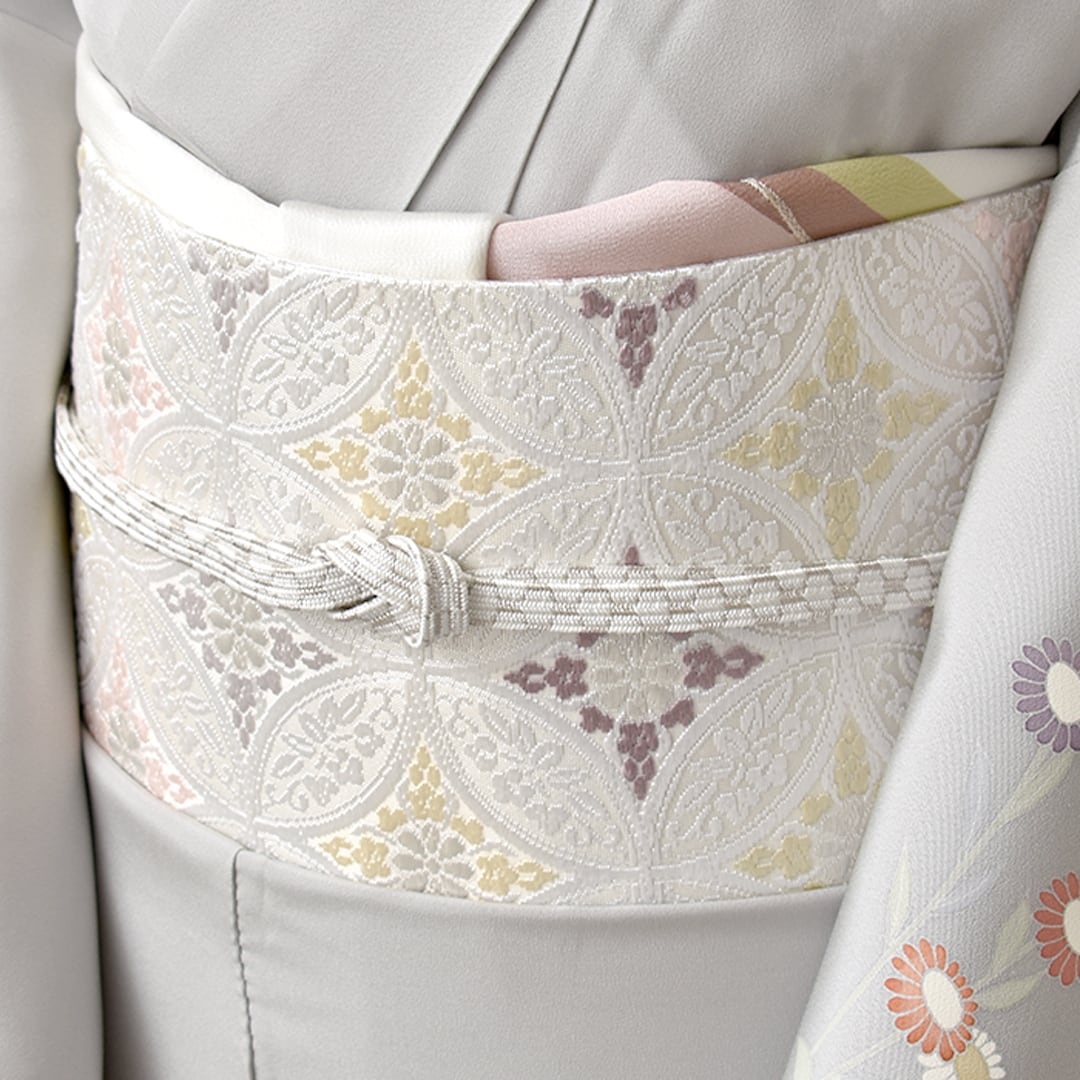 こちらは 帯地のベースが白系で銀糸が所どころに