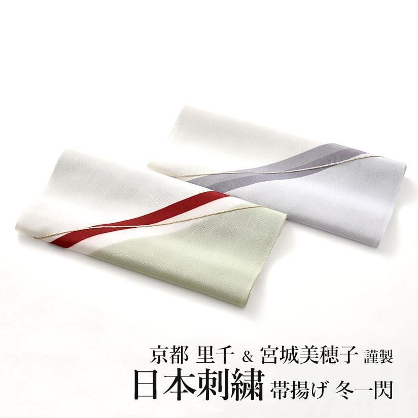 [帯揚げ]京都 里千『冬一閃』天然染色 日本刺繍 宮城美穂子 作 組紐縫い刺繍 正絹 日本製(商品番号:20301) お仕立て代込み!送料無料!