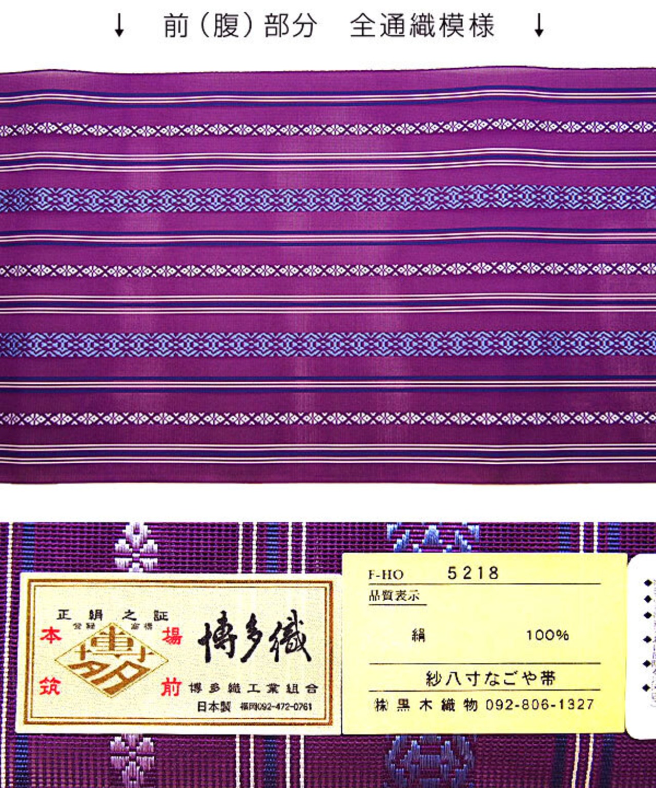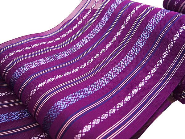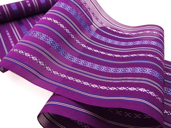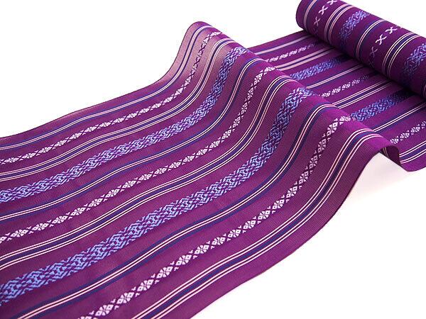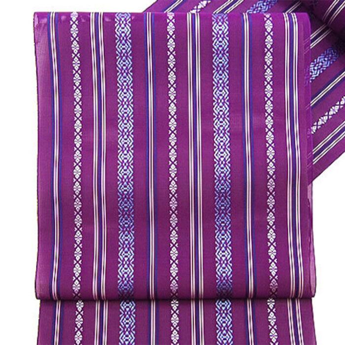 [名古屋帯](夏/単衣)博多織 黒木織物 謹製 紗献上『夏紫』五献上柄 紗 もじり織 金印 八寸帯 正絹 日本製(商品番号:3253)