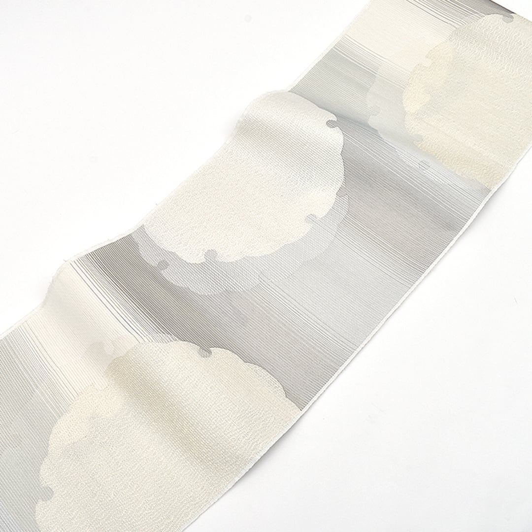 [名古屋帯](オールシーズン帯)西陣織 老舗機屋 謹製 雪輪よろけ織 九寸帯 正絹 日本製(商品番号:19848)
