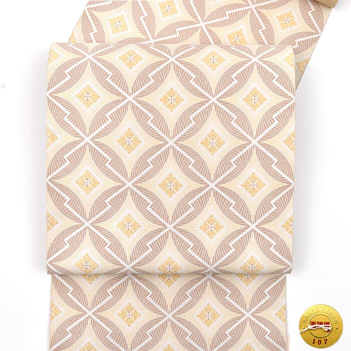 [名古屋帯]西陣織 名門 藤原織物 謹製 しょうは織 松葉菱繋ぎ文 九寸帯 正絹 日本製(商品番号:20907) お仕立て代込み!送料無料!