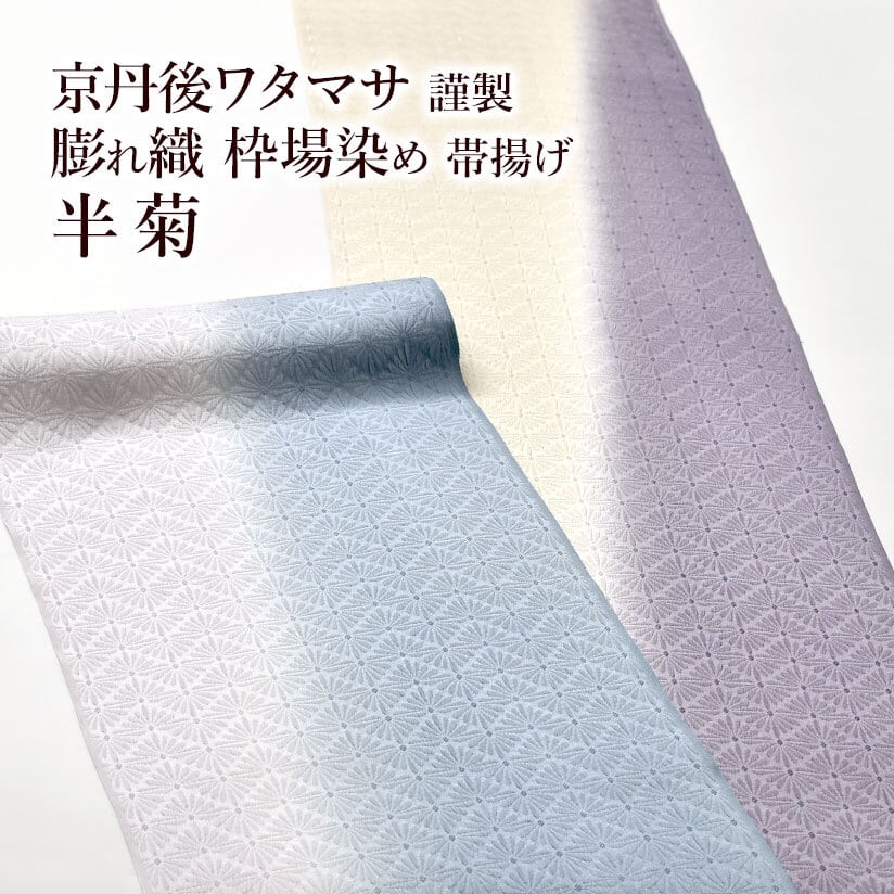 [帯揚げ]京丹後ワタマサ 謹製『半菊』膨れ織 枠場染め ぼかし帯揚げ 正絹 日本製 (商品番号:20882) お仕立て代込み!送料無料!