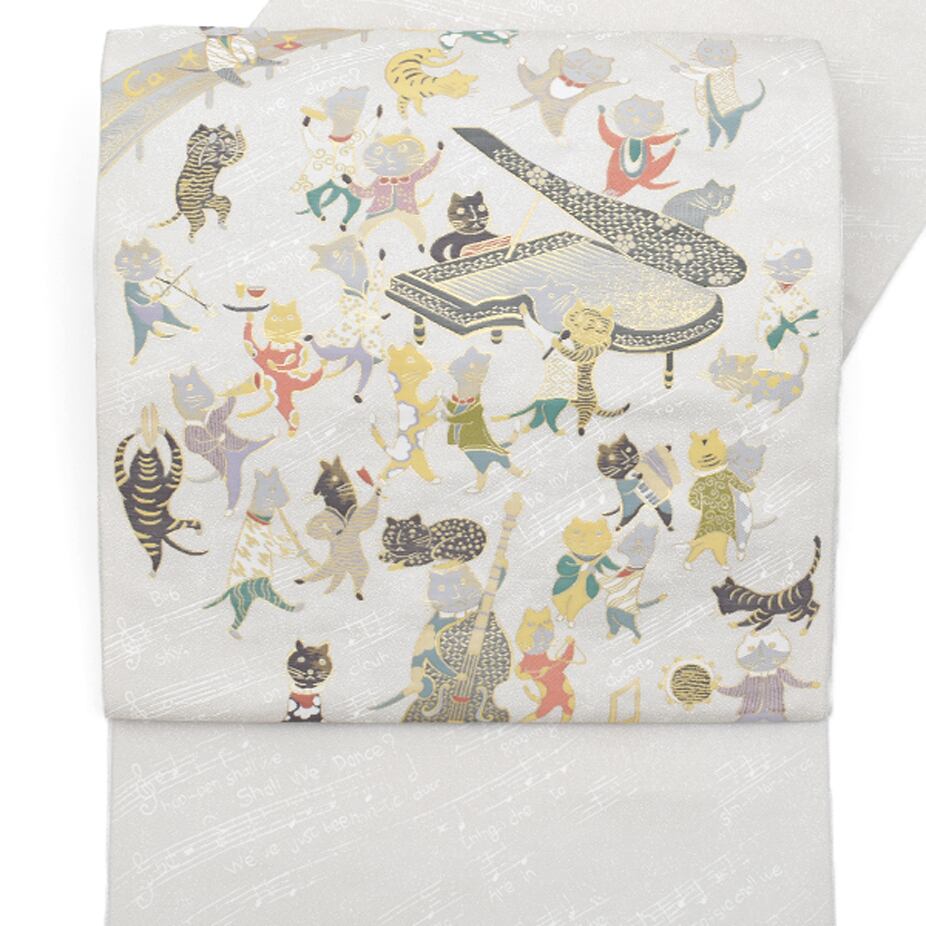 [名古屋帯]西陣織 西陣まいづる『Shall We Dance』 猫ちゃんのダンスパーティー 別注織 九寸帯 正絹 日本製(商品番号:19261)